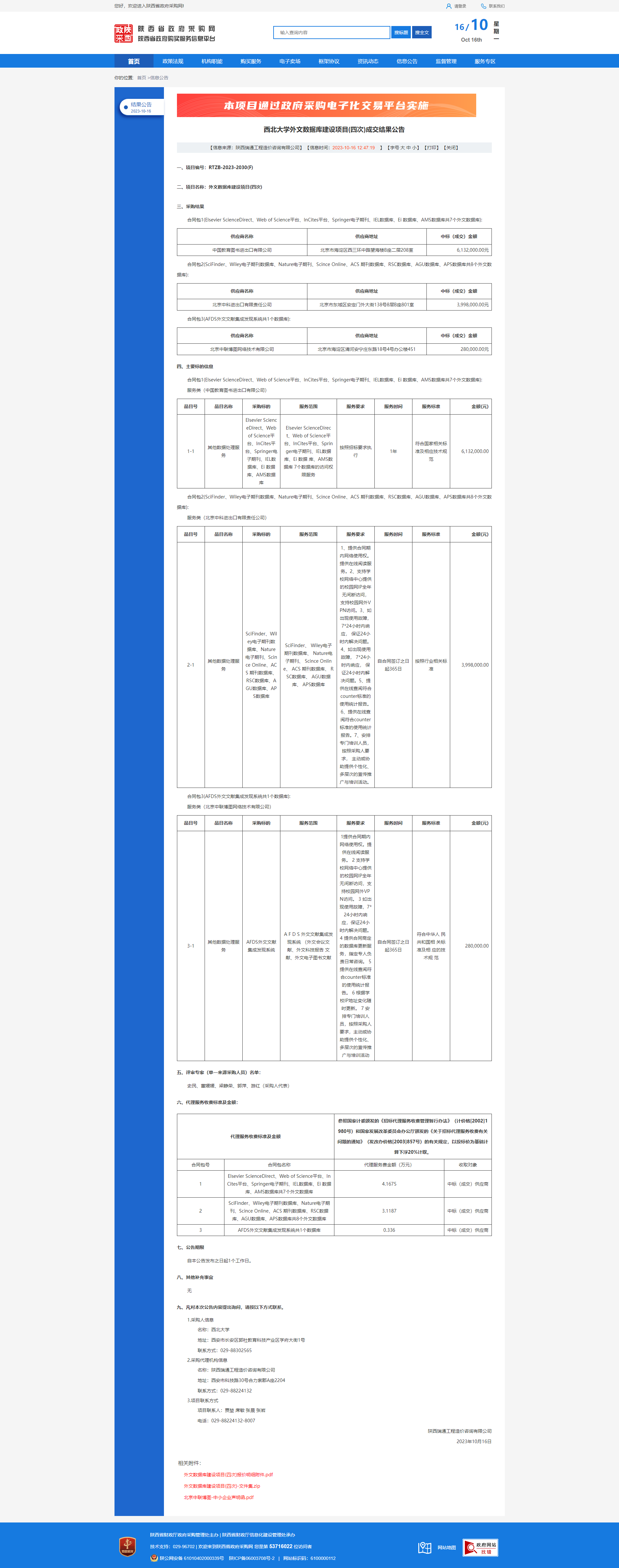 必赢3003no1线路检测中心外文数据库建设项目(四次)成交结果公告