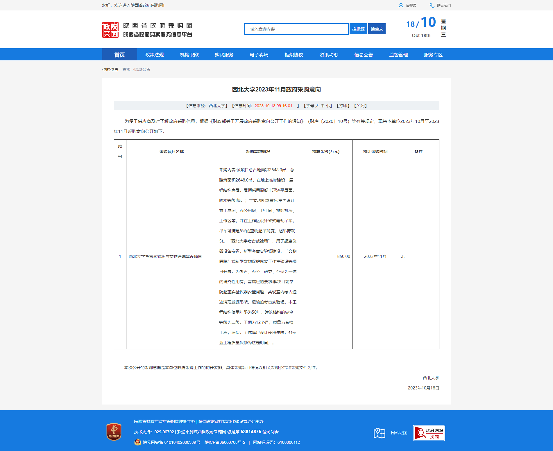 必赢3003no1线路检测中心2023年11月政府采购意向