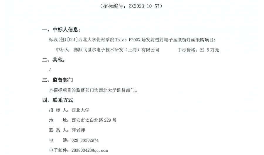 必赢3003no1线路检测中心化材学院Talos F200X场发射透射电子显微镜灯丝采购项目成交结果公示 作者: 编辑: 时间:2023-12-05 原公告链接:http://bulletin.sntba.com/resultBulletin/2023-12-05/881283.html