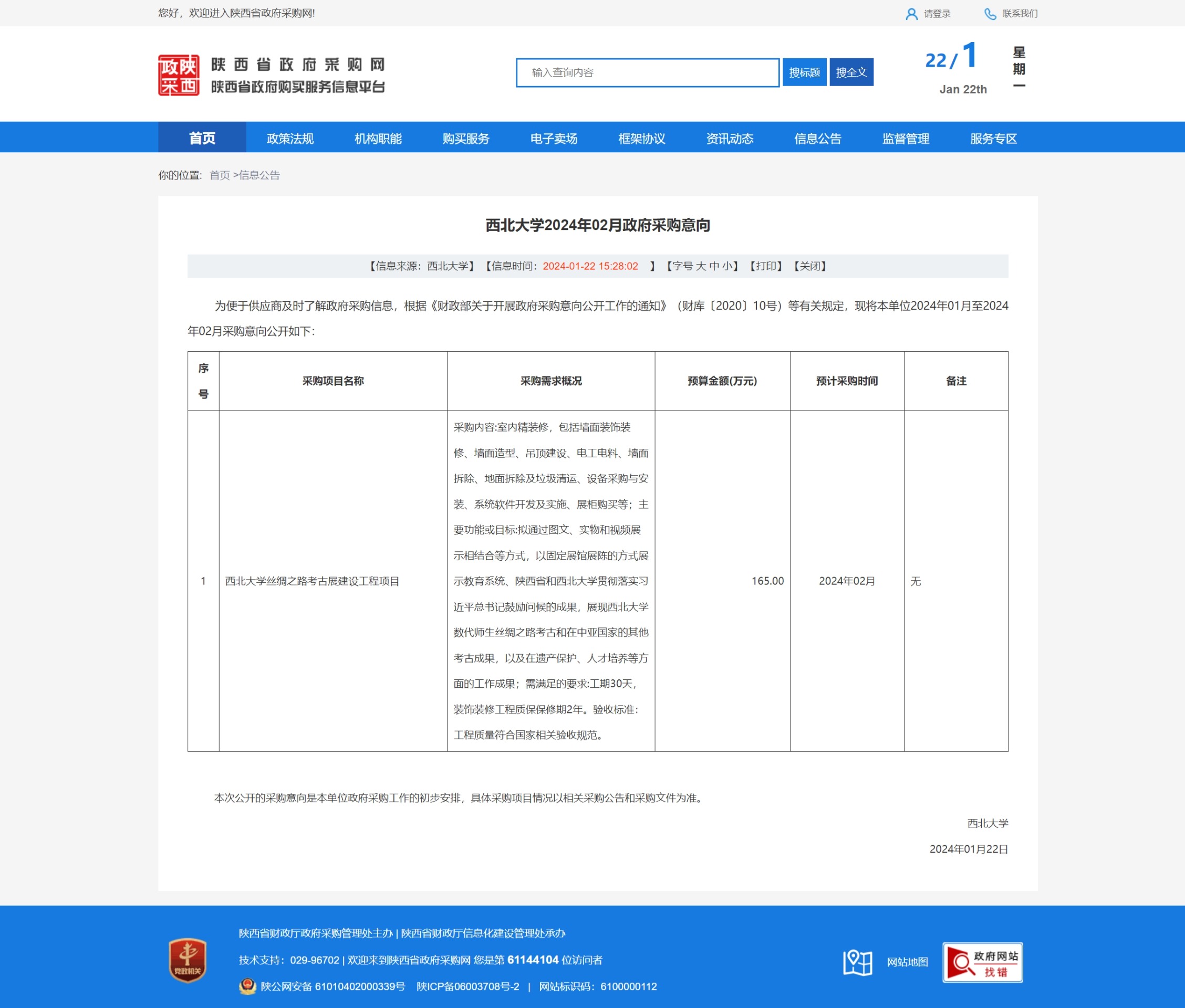 必赢3003no1线路检测中心2024年02月政府采购意向