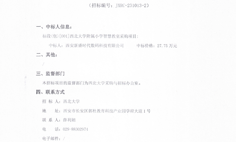 必赢3003no1线路检测中心附属小学智慧教室采购项目(二次)中标结果公告 作者: 编辑:采购与招标办公室 时间:2024-03-05 原公告链接:http://bulletin.sntba.com/resultBulletin/2024-03-05/1173145.html