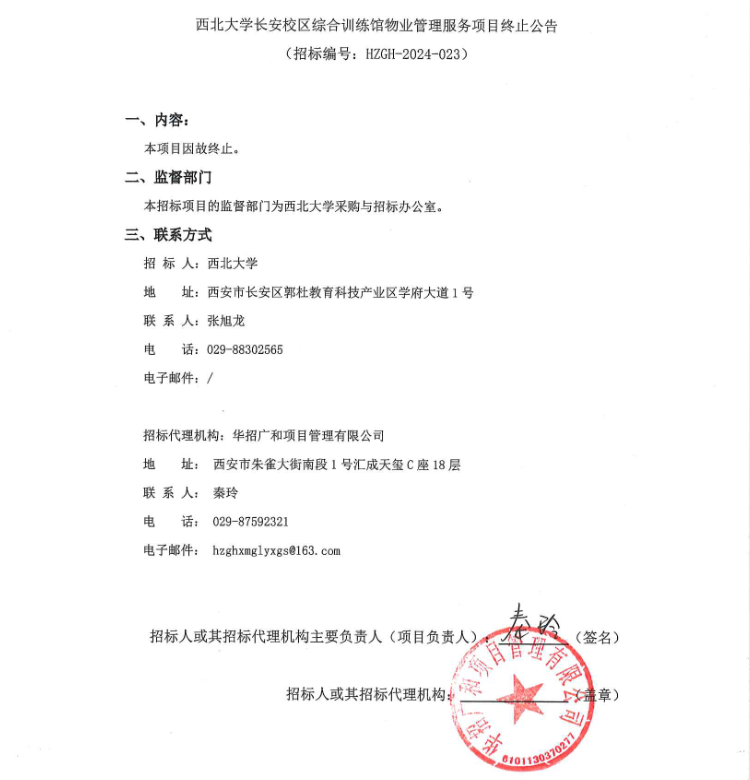 必赢3003no1线路检测中心长安校区综合训练馆物业管理服务项目终止公告