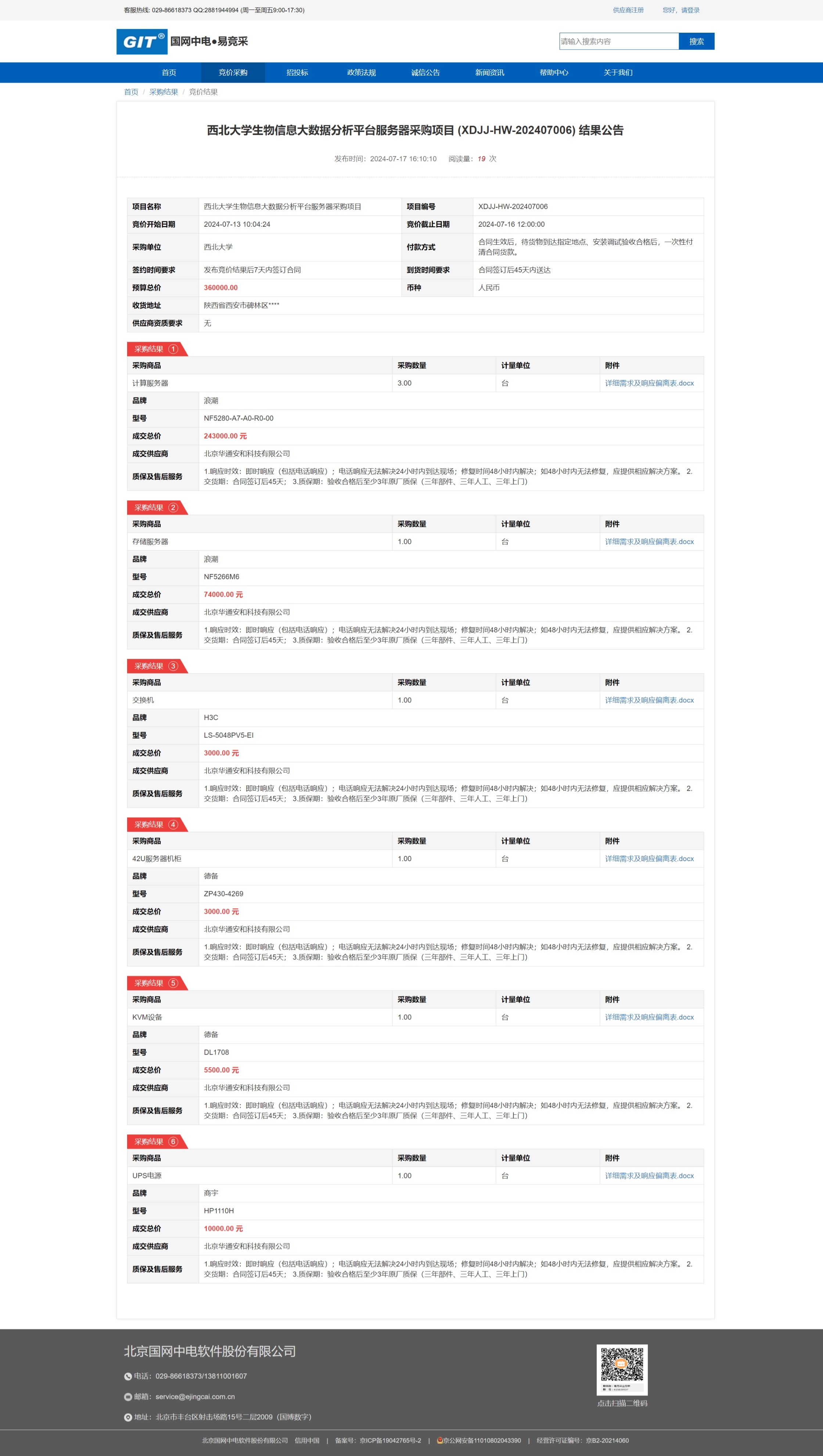 必赢3003no1线路检测中心生物信息大数据分析平台服务器采购项目 (XDJJ-HW-202407006) 竞价结果公告 作者: 编辑:采购与招标办公室 时间:2024-07-17 原公告链接:https://www.ejingcai.com.cn/site/bidding/detail/11726