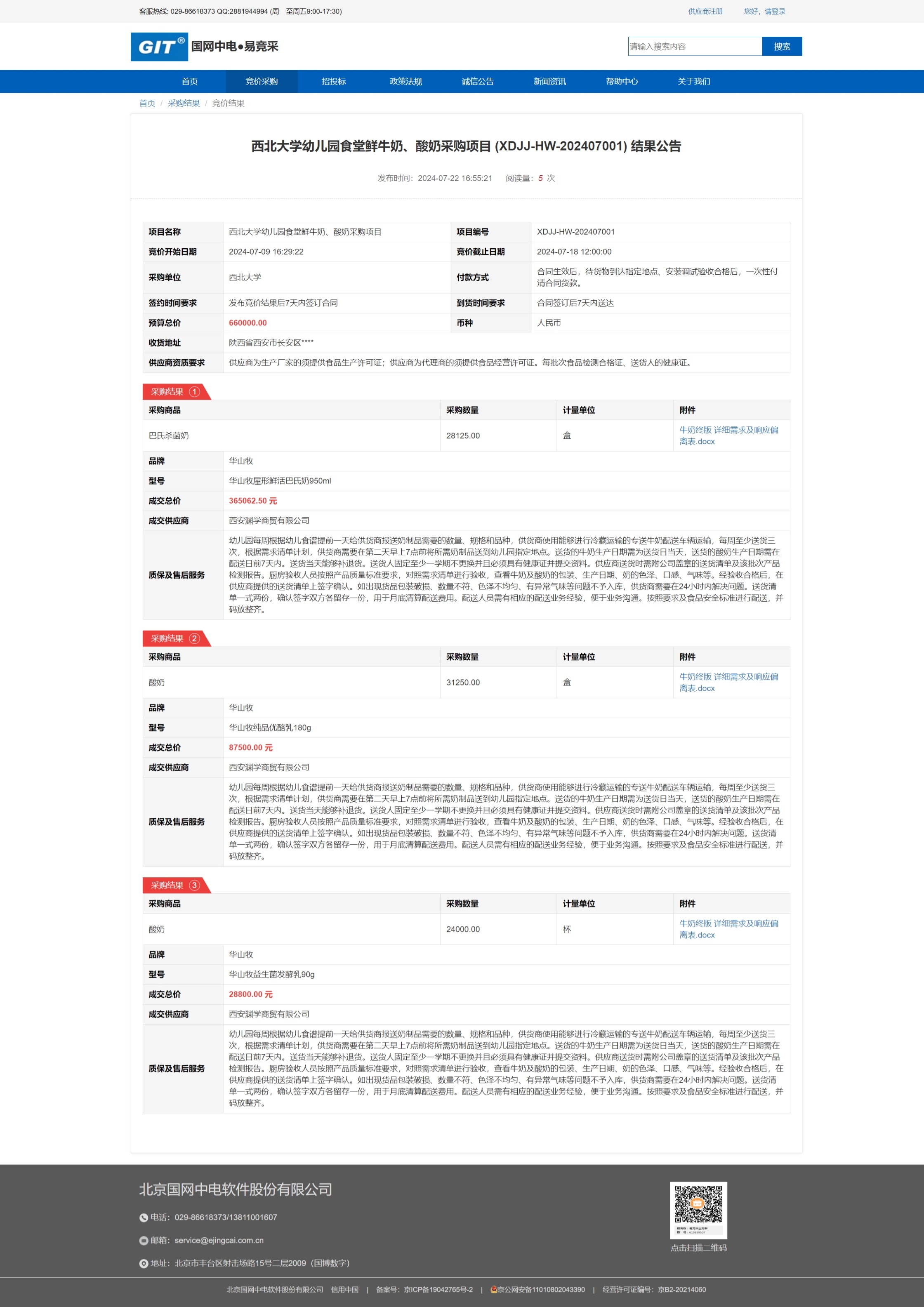 必赢3003no1线路检测中心幼儿园食堂鲜牛奶、酸奶采购项目 (XDJJ-HW-202407001) 竞价结果公告 作者: 编辑:采购与招标办公室 时间:2024-07-22 原公告链接:https://www.ejingcai.com.cn/site/bidding/detail/11809