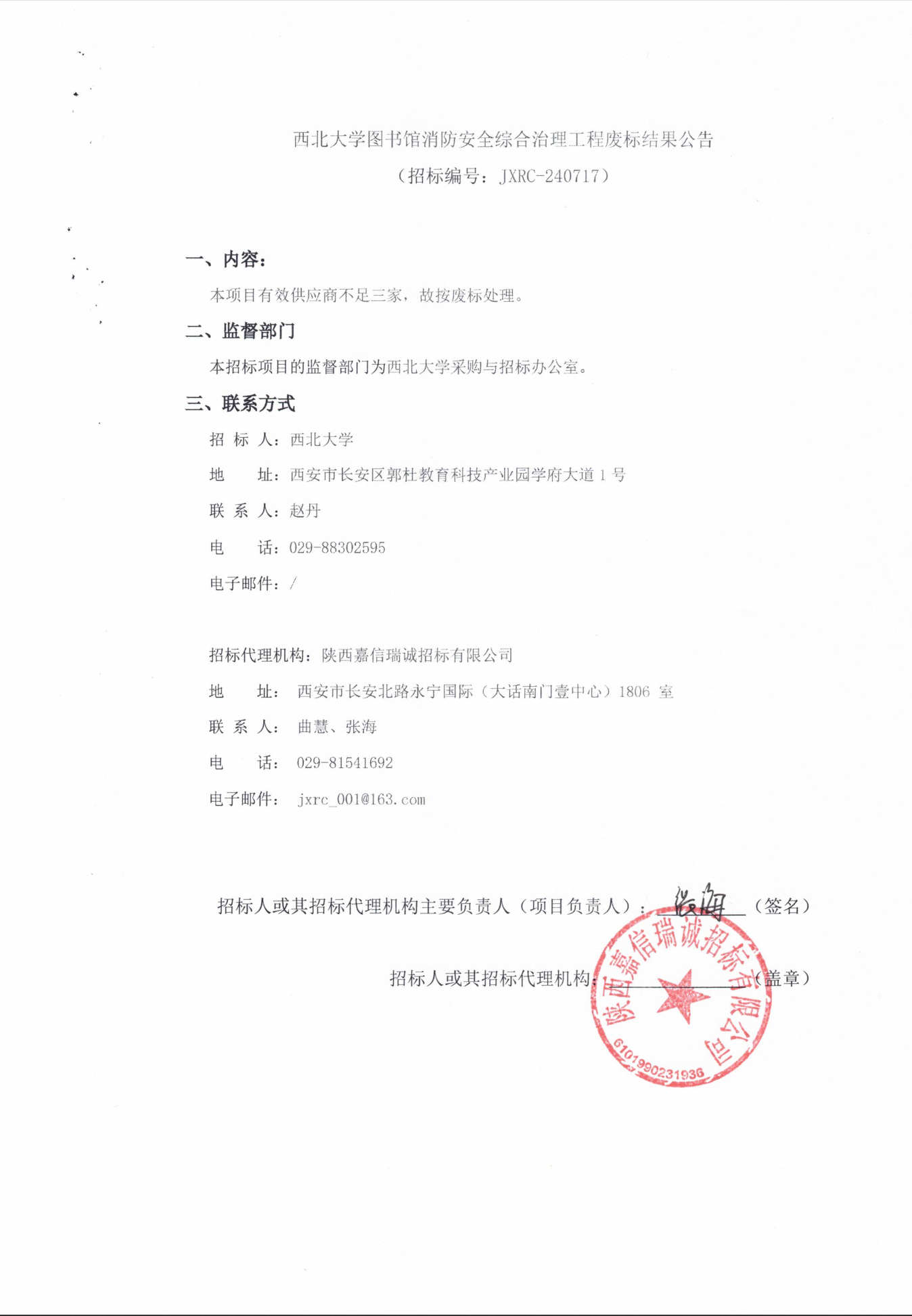 必赢3003no1线路检测中心图书馆消防安全综合治理工程废标结果公告