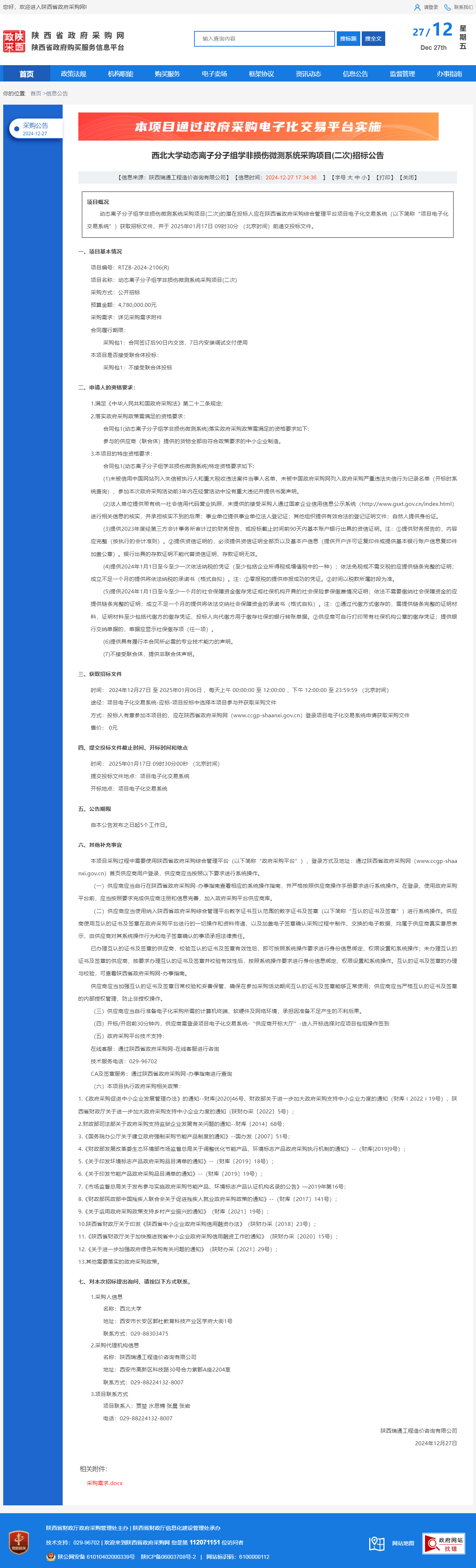 必赢3003no1线路检测中心动态离子分子组学非损伤微测系统采购项目(二次)招标公告 作者:采购与招标办公室 编辑: 时间:2024-12-27 原公告链接:http://www.ccgp-shaanxi.gov.cn/freecms/site/shaanxi/ggxx/info/2024/8a69c5a59218576d019407700c364918.html?noticeType=001011¬iceId=6f721510-c437-11ef-8063-08c0eb20c666