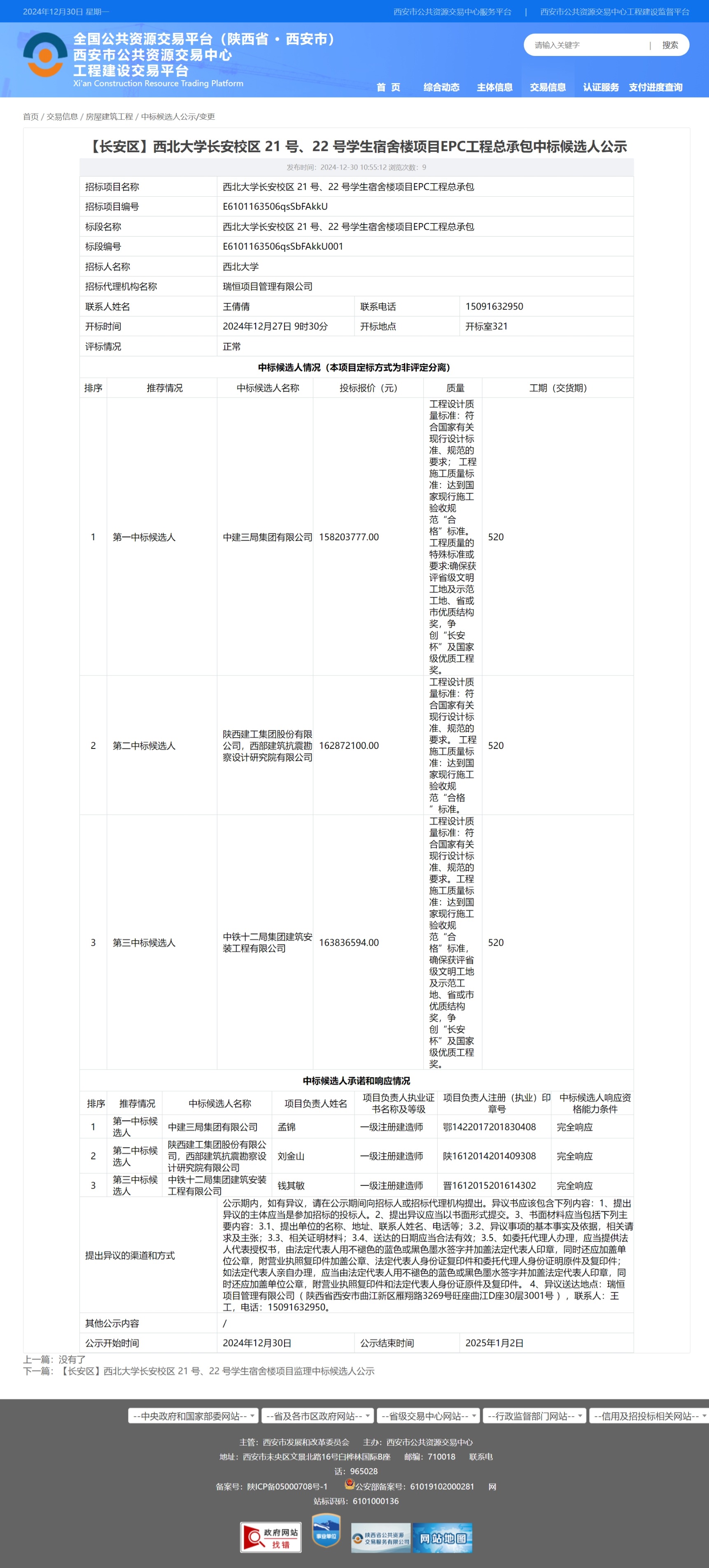 必赢3003no1线路检测中心长安校区 21 号、22 号学生宿舍楼项目EPC工程总承包中标候选人公示