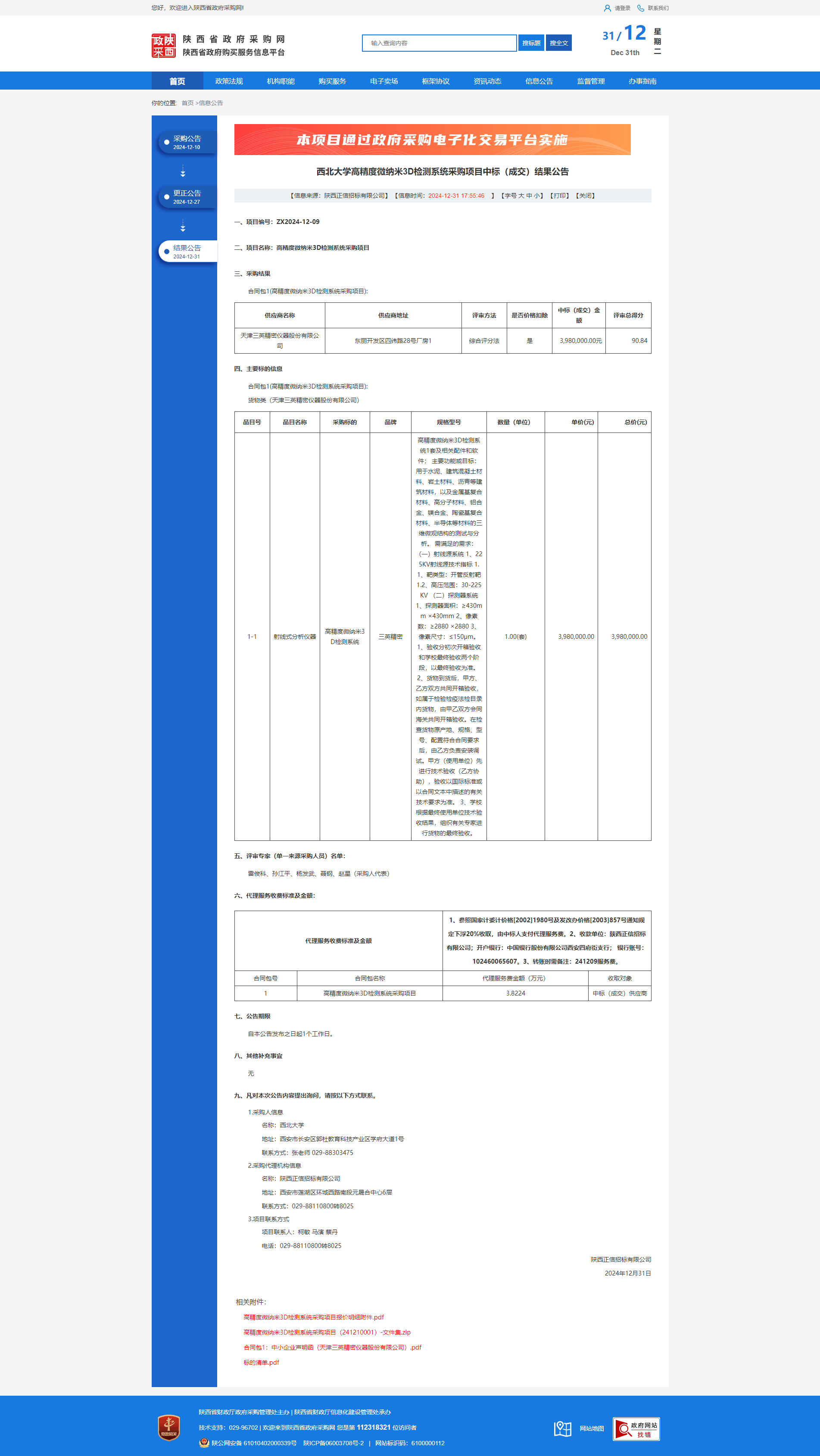 必赢3003no1线路检测中心高精度微纳米3D检测系统采购项目中标(成交)结果公告