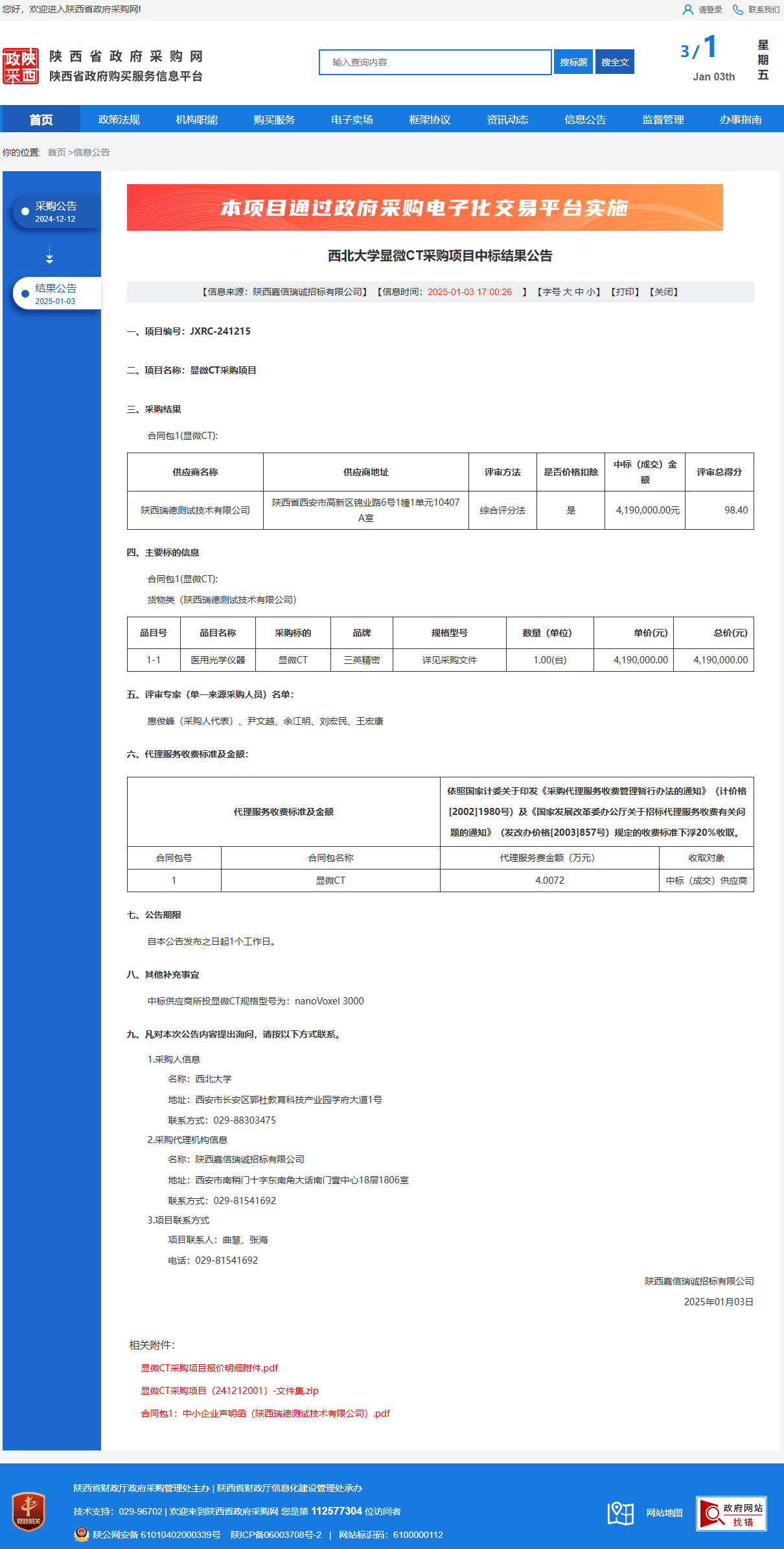 必赢3003no1线路检测中心显微CT采购项目中标结果公告 作者:采购与招标办公室 编辑: 时间:2025-01-03 原公告链接:https://www.ccgp-shaanxi.gov.cn/freecms/site/shaanxi/ggxx/info/2025/8a69c44e9218572b01942b1fbacb63ce.html?noticeType=001021¬iceId=d5b3fb7e-c9b2-11ef-8063-08c0eb20c666