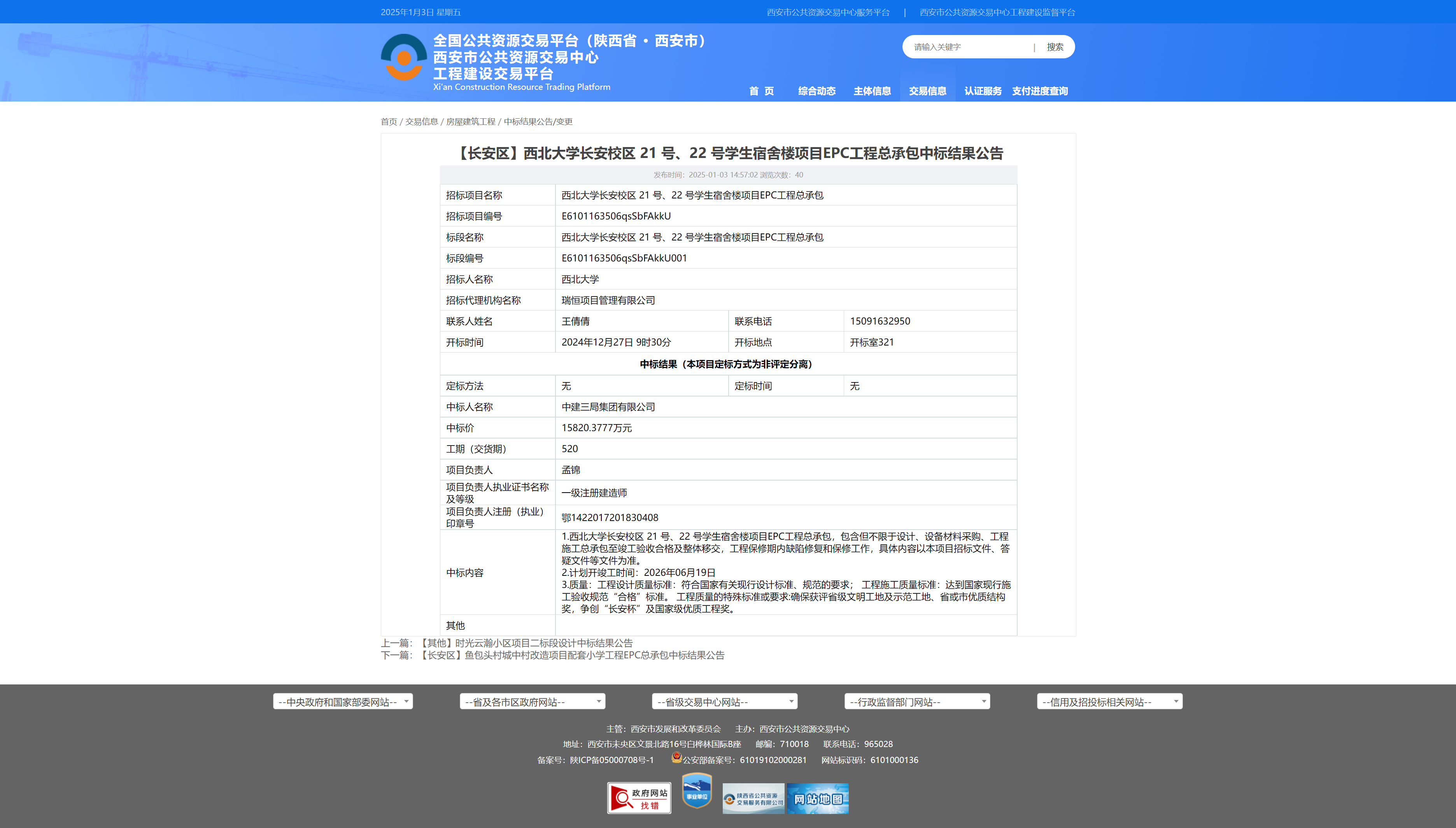 必赢3003no1线路检测中心长安校区21号、22号学生宿舍楼项目EPC工程总承包中标结果公告