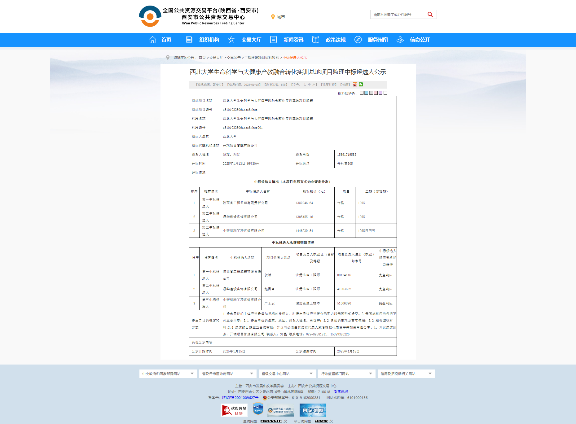 必赢3003no1线路检测中心生命科学与大健康产教融合转化实训基地项目监理中标候选人公示