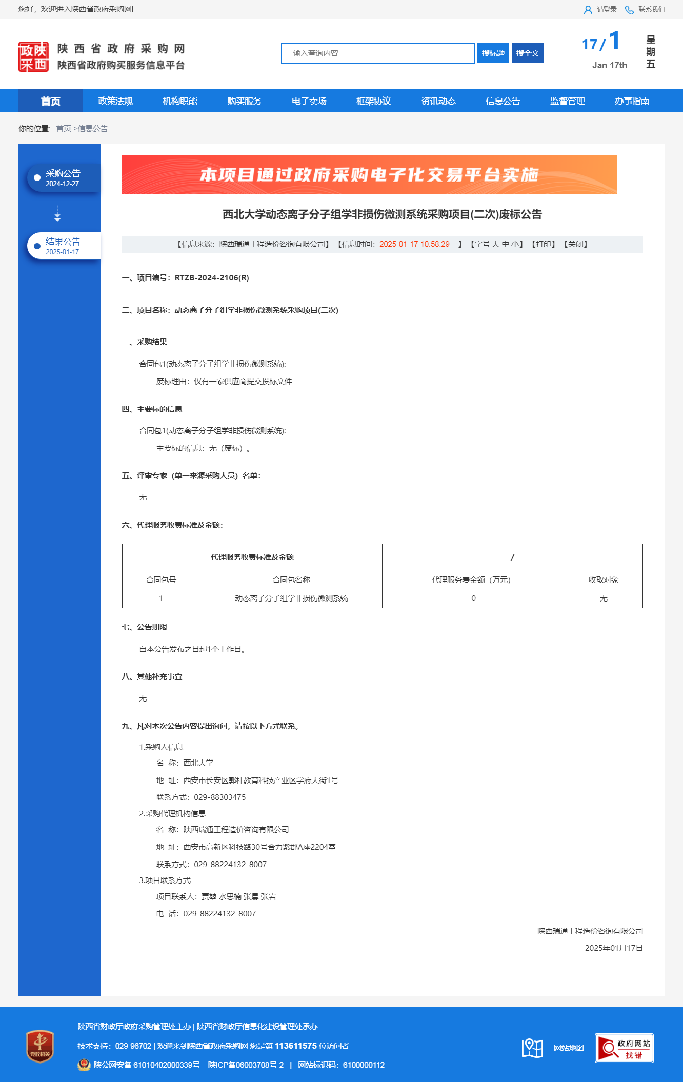 必赢3003no1线路检测中心动态离子分子组学非损伤微测系统采购项目(二次)废标公告 作者:采购与招标办公室 编辑: 时间:2025-01-17 原公告链接:http://www.ccgp-shaanxi.gov.cn/freecms/site/shaanxi/ggxx/info/2025/8a69c96e945549bc0194722b08d821b5.html?noticeType=001006¬iceId=9dc5fb96-d480-11ef-8063-08c0eb20c666