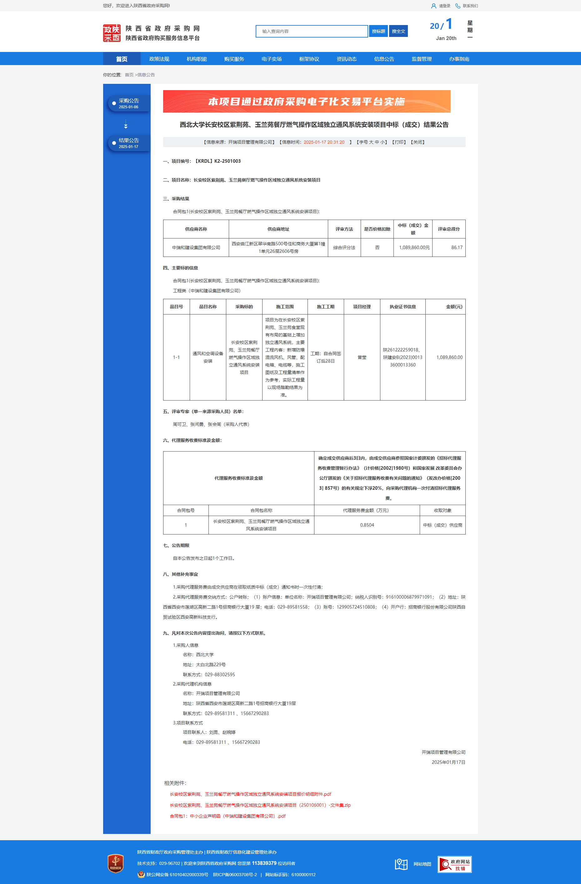 必赢3003no1线路检测中心长安校区紫荆苑、玉兰苑餐厅燃气操作区域独立通风系统安装项目中标(成交)结果公告
