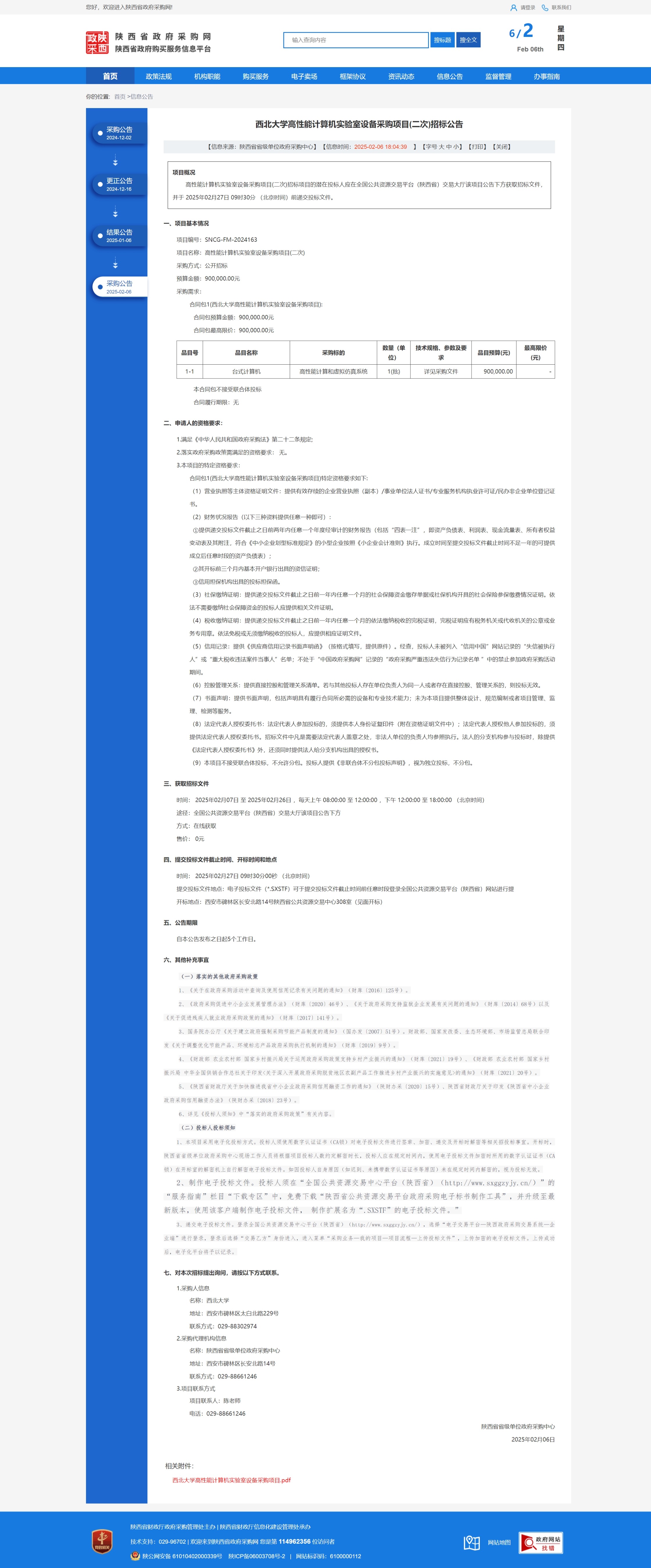 必赢3003no1线路检测中心高性能计算机实验室设备采购项目(二次)招标公告 作者: 编辑:薛利娟 时间:2025-02-06 原公告链接:https://www.ccgp-shaanxi.gov.cn/freecms/site/shaanxi/ggxx/info/2025/8a69c97494792d530194d955079d37f3.html?noticeType=001011¬iceId=813dda34-e473-11ef-8063-08c0eb20c666