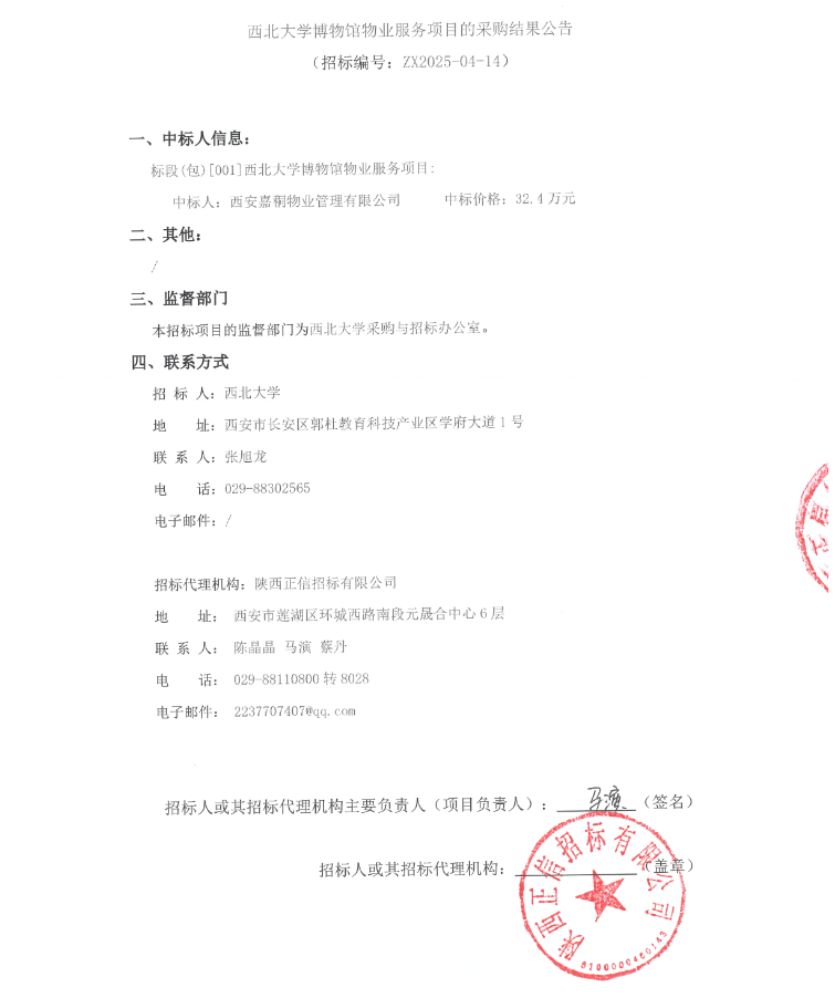 必赢3003no1线路检测中心博物馆物业服务项目的采购结果公告