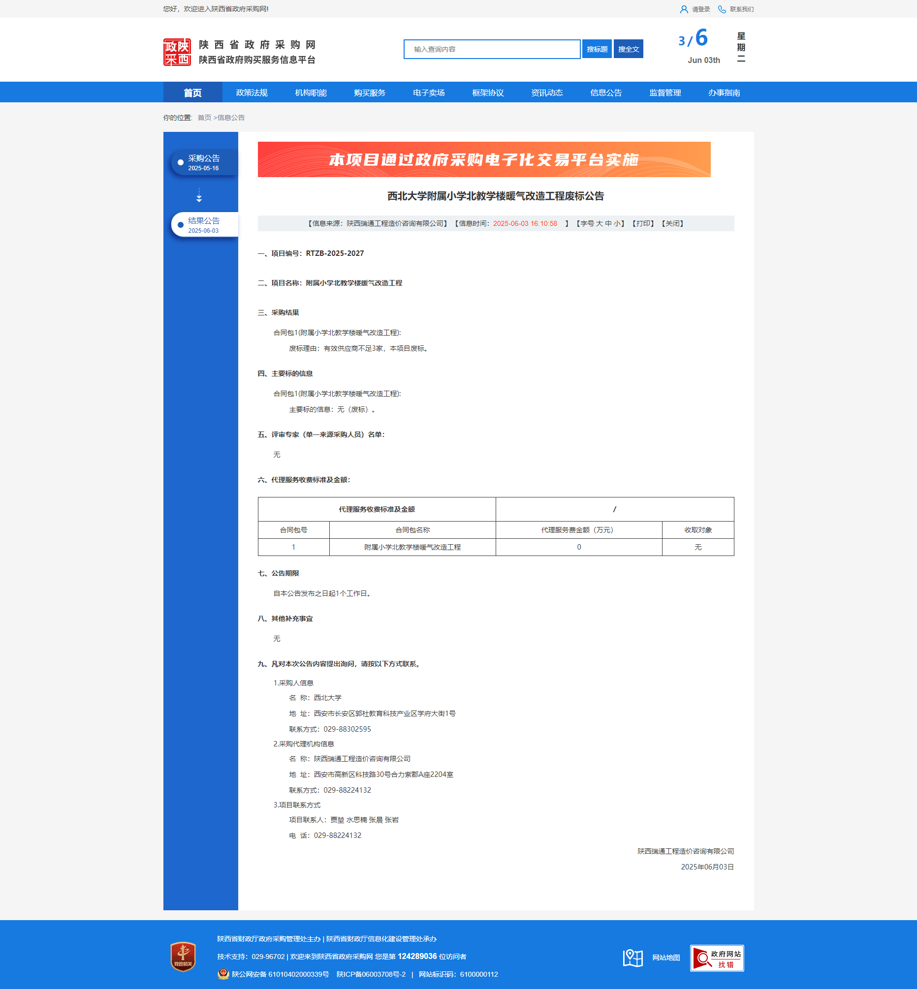 必赢3003no1线路检测中心附属小学北教学楼暖气改造工程废标公告