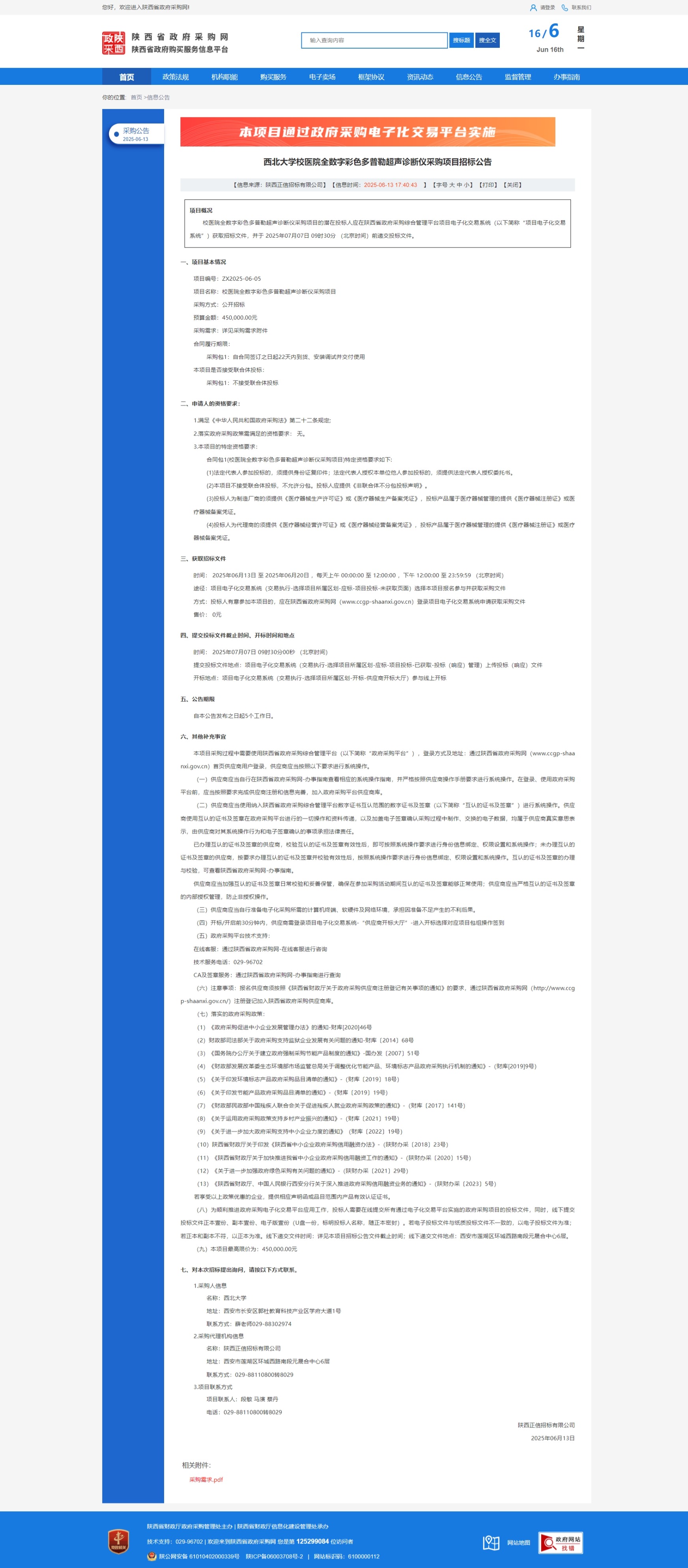 必赢3003no1线路检测中心校医院全数字彩色多普勒超声诊断仪采购项目招标公告 作者: 编辑:采购与招标办公室 时间:2025-06-16 原公告链接:https://www.ccgp-shaanxi.gov.cn/freecms/site/shaanxi/ggxx/info/2025/8a69c6749714a43701976892e3823fce.html?noticeType=001011¬iceId=6edbc741-483c-11f0-8063-08c0eb20c666