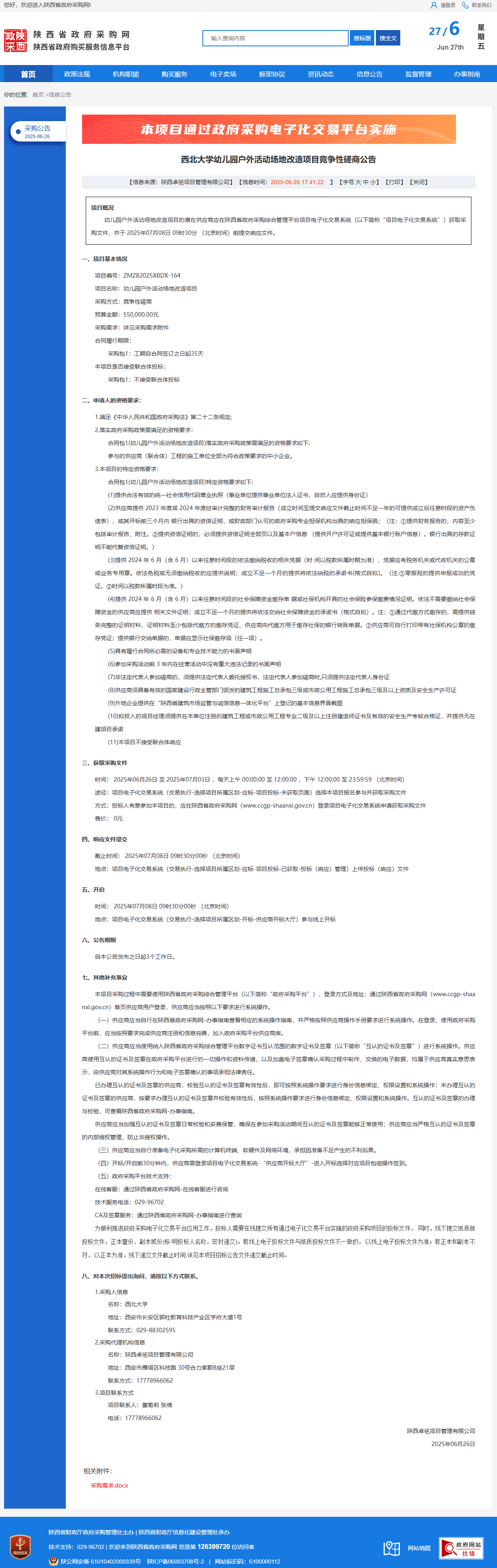 必赢3003no1线路检测中心幼儿园户外活动场地改造项目竞争性磋商公告