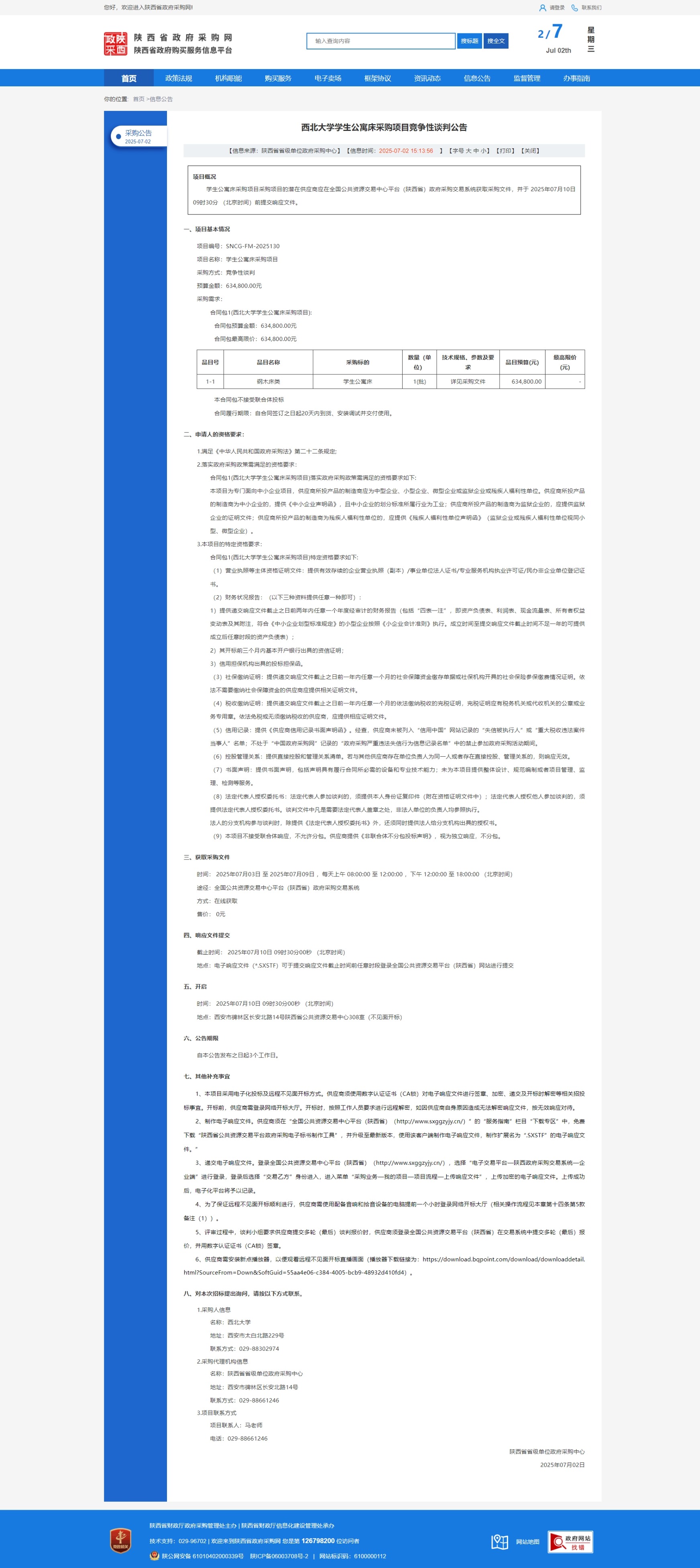 原公告链接:https://www.ccgp-shaanxi.gov.cn/freecms/site/shaanxi/ggxx/info/2025/8a69c67497a9ff030197c8e900a9510c.html?noticeType=001013¬iceId=1bd2af55-5716-11f0-8063-08c0eb20c666