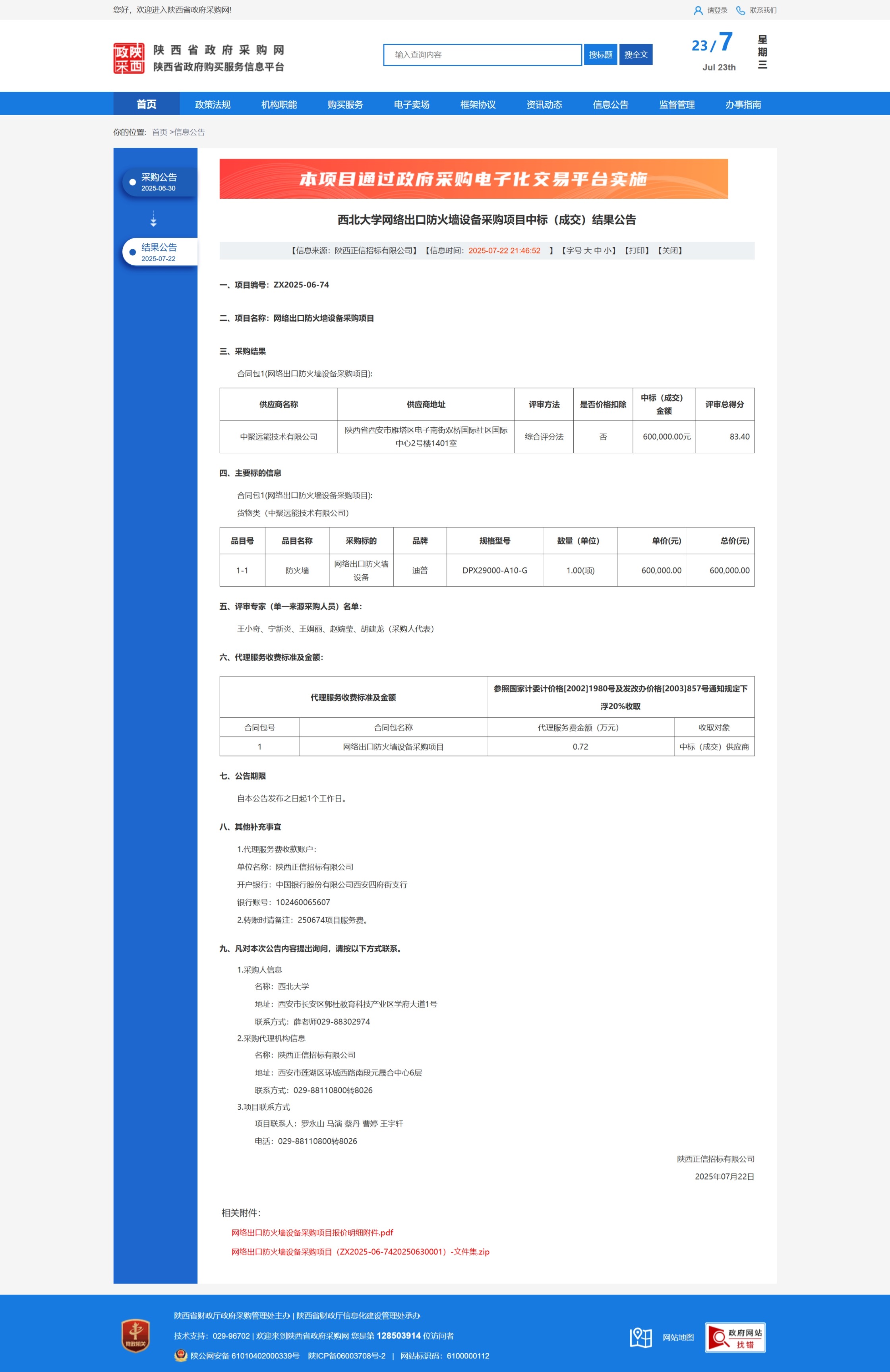 必赢3003no1线路检测中心网络出口防火墙设备采购项目中标(成交)结果公告 作者: 编辑:采购与招标办公室 时间:2025-07-23 原公告链接:https://www.ccgp-shaanxi.gov.cn/freecms/site/shaanxi/ggxx/info/2025/8a69c8f397dc839d01983234be5949f6.html?noticeType=001021¬iceId=5985f208-6704-11f0-8063-08c0eb20c666
