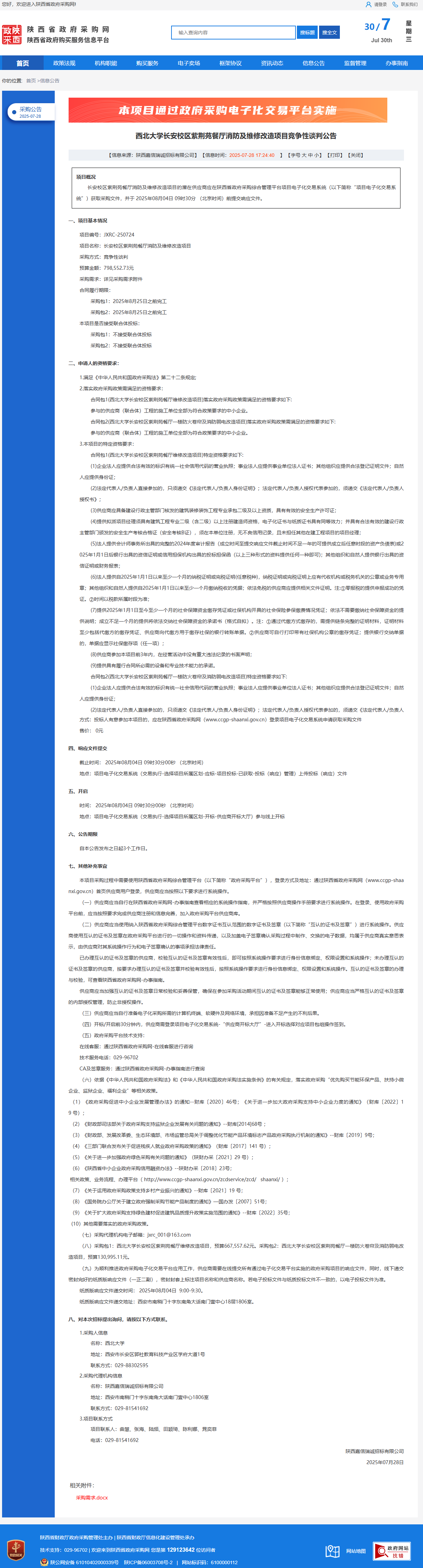 必赢3003no1线路检测中心长安校区紫荆苑餐厅消防及维修改造项目竞争性谈判公告