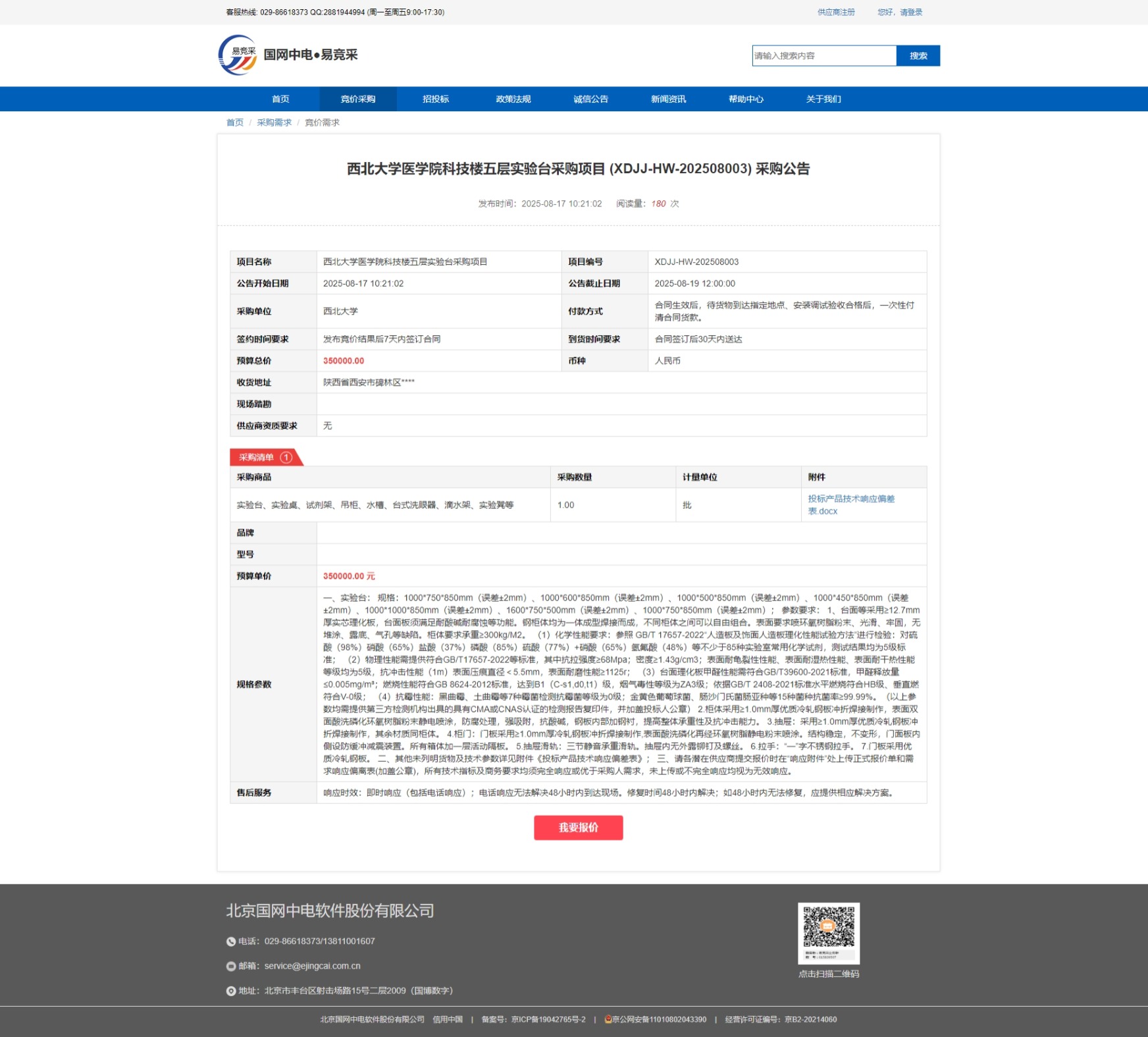 必赢3003no1线路检测中心医学院科技楼五层实验台采购项目 (XDJJ-HW-202508003)竞价 采购公告 作者: 编辑:采购与招标办公室 时间:2025-08-18 原公告链接:https://www.ejingcai.com.cn/site/bidding/detail/19996
