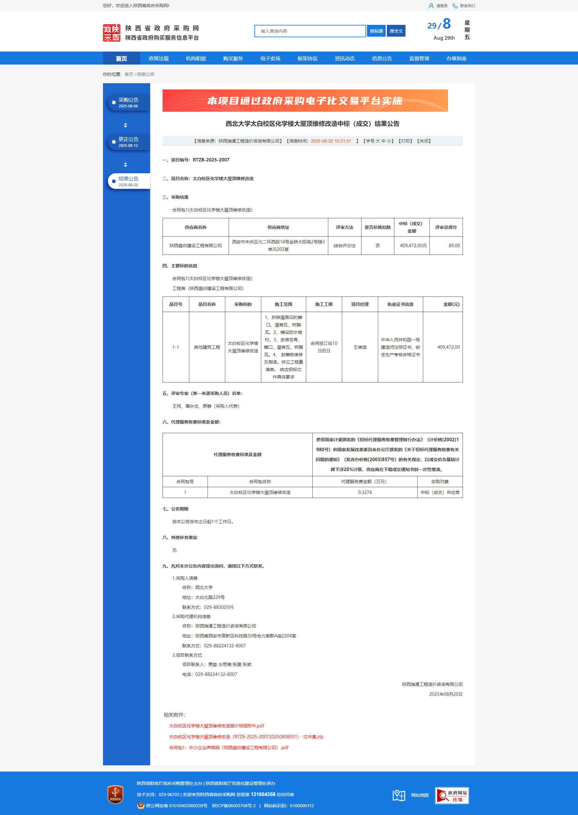 必赢3003no1线路检测中心太白校区化学楼大屋顶维修改造中标(成交)结果公告