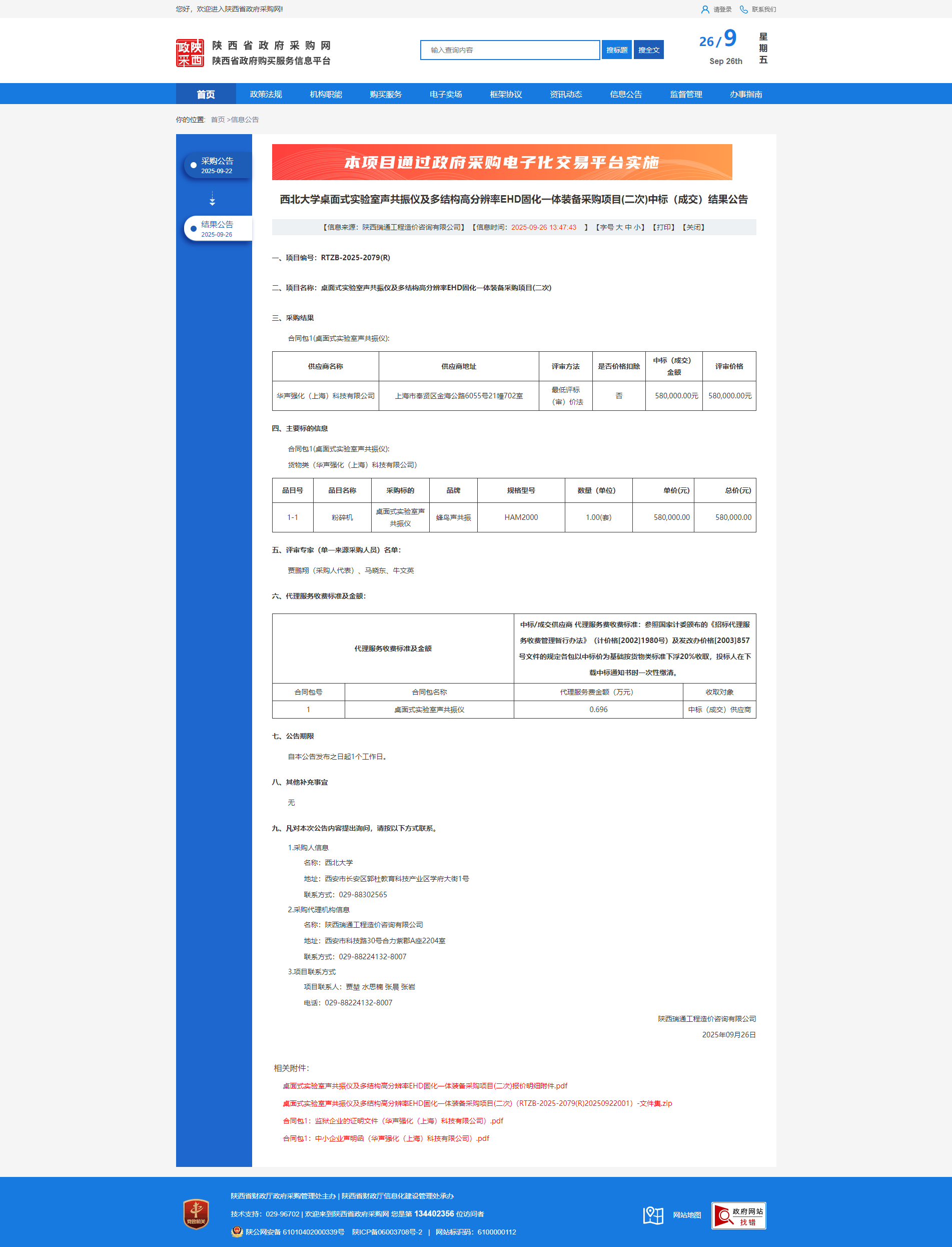 必赢3003no1线路检测中心桌面式实验室声共振仪及多结构高分辨率EHD固化一体装备采购项目(二次)中标(成交)结果公告
