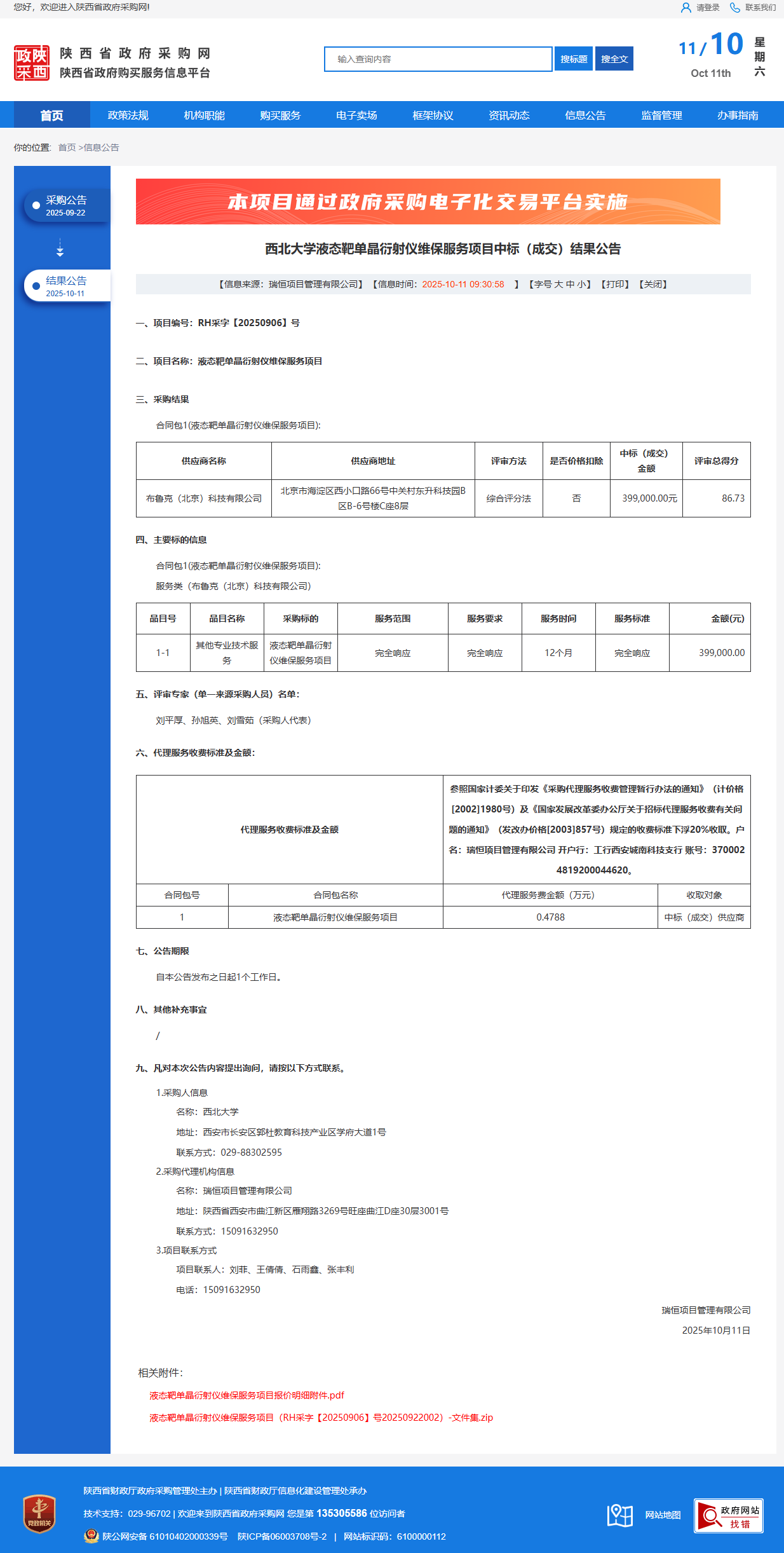 必赢3003no1线路检测中心液态靶单晶衍射仪维保服务项目中标(成交)结果公告