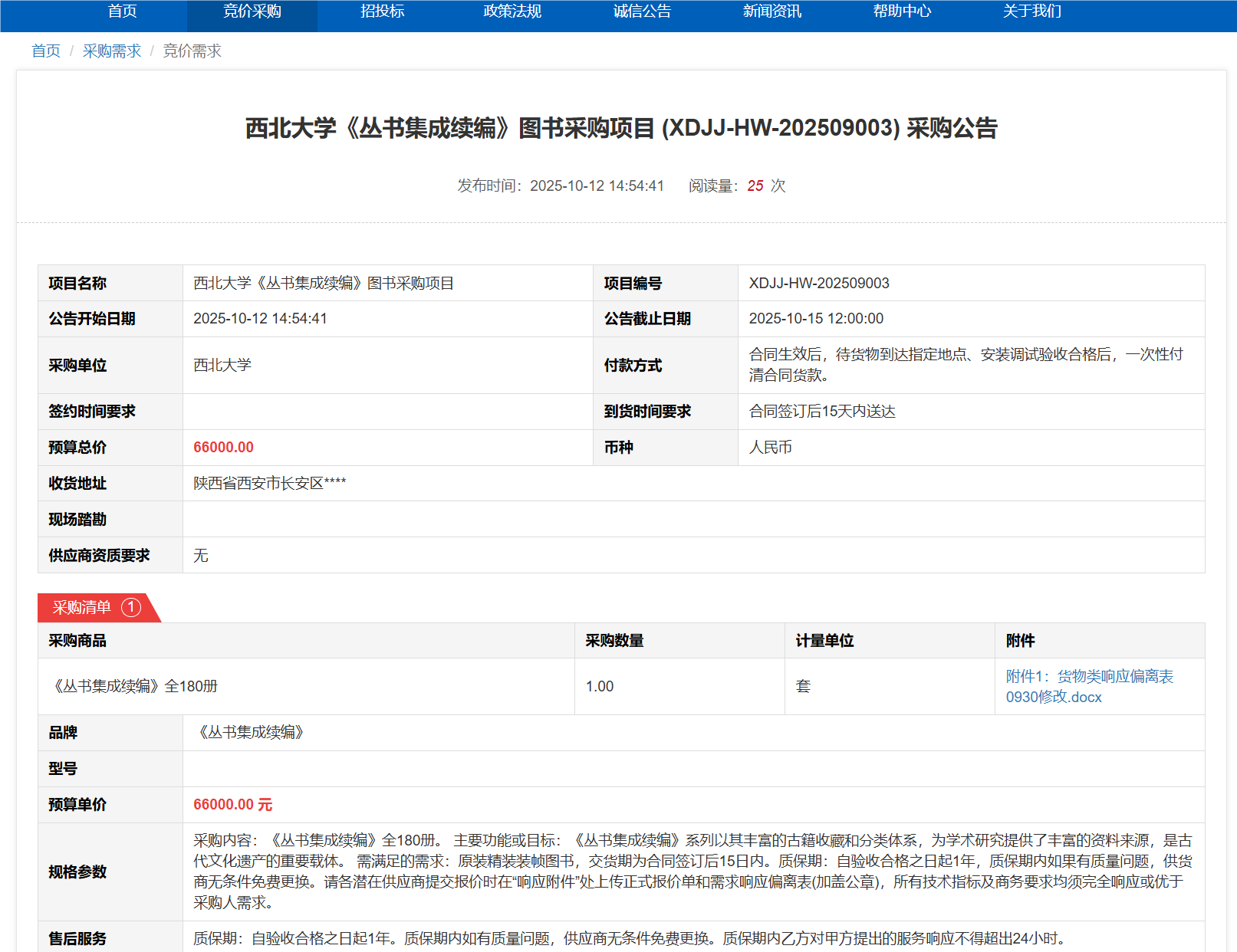 必赢3003no1线路检测中心区域国别学院学术交流研讨室设备采购项目(XDJJ-HW-202510001)竞价采购公告
