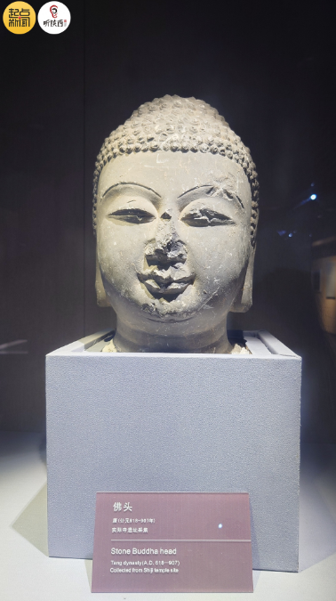 王芝叶指着一件石质佛头告诉记者,这枚武周时期的佛头,体量虽不大,意义却非凡。