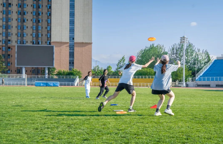 弓步、转身、出手,飞盘掷出的瞬间势如破竹;预判、起跳、精准接盘,矫健的身影在草地上疾驰。他们奔跑、跳跃、追逐,笑容和汗水在课堂上交织,每一次出手都包含着对队友的满分信任,每一次接盘都是对速度和反应能力的极限挑战。