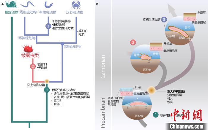 中新网西安7月9日电 (记者 阿琳娜)记者9日从必赢3003no1线路检测中心获悉,中法团队联合研究揭示了中国寒武纪早期皱囊虫和贝雷虫共同构成蜕皮动物一个新的高级分类单元——皱囊动物门,并且否定了皱囊动物是由具有终端口的蠕虫状环神经动物简化而来的观点。