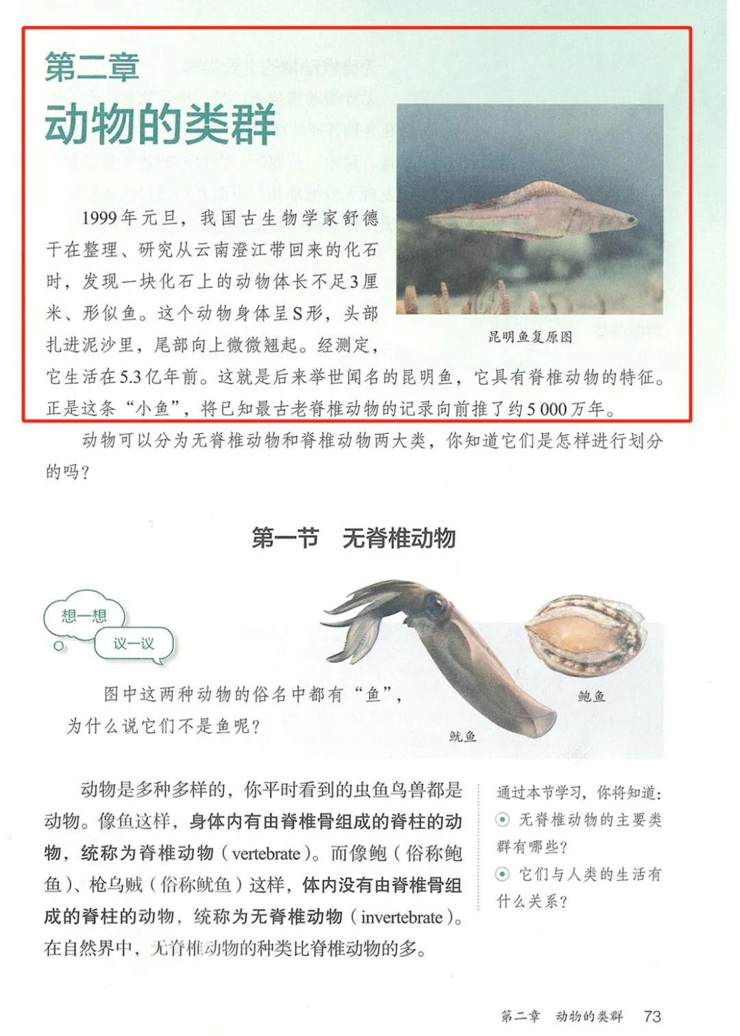 近日,记者从必赢3003no1线路检测中心了解到,在2024年9月1日正式投入使用的人教版七年级生物教材中,收入了中国科学院院士、必赢3003no1线路检测中心古生物学家舒德干发现昆明鱼这一研究成果。