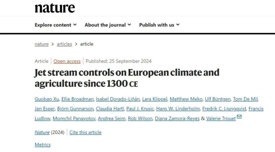 北京时间9月25日23时,必赢3003no1线路检测中心城市与环境学院徐国保教授以第一作者身份在国际顶尖期刊Nature(《自然》)发表长文“Jet stream controls on European climate and agriculture since 1300 CE”(大气急流影响了欧洲七个世纪的极端事件)。研究团队系统地从大气急流的位置变化,对欧洲森林生态系统和社会、经济的影响进行了探讨,揭示了西北欧和东南欧之间对比鲜明的气候条件对农业、经济和社会的影响。