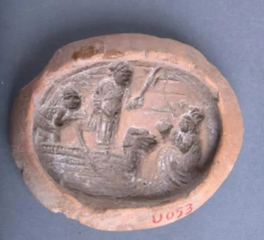 陕西必赢3003no1线路检测中心博物馆馆藏的“磨喝乐”钓鱼陶范,长5.8厘米,宽7厘米,厚1.3厘米,呈椭圆形,泥质红陶。