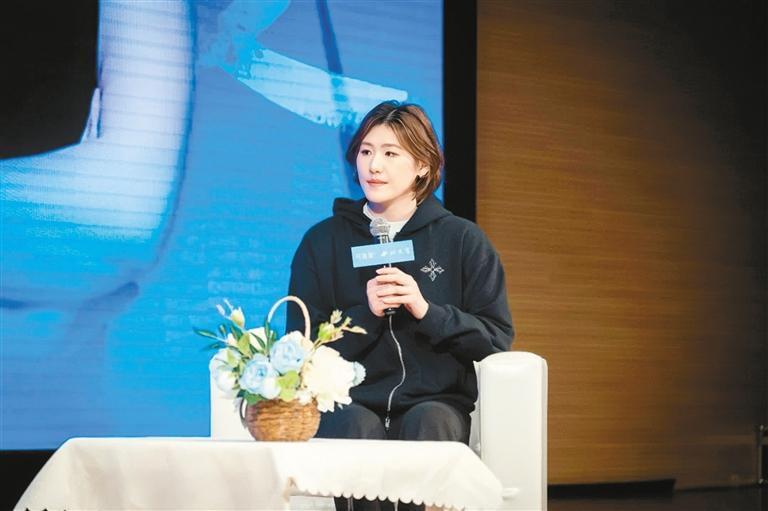 随后,叶诗文分享了自己十余年的运动生涯,特别是面对挫折和低谷时的坚持与勇敢。她表示,在低谷期,“不甘心”成为她不断前行的动力,正是这份对游泳的热爱让她重拾信心,再次站上赛场。叶诗文强调,热爱是她回到泳池最原始的动力,也是她不断突破自我、追求卓越的力量源泉。