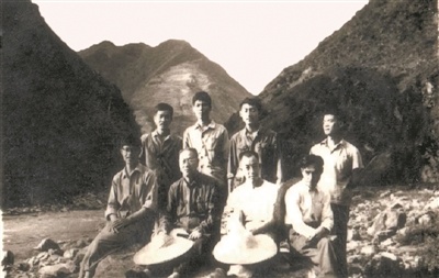 图为张伯声(一排左二)带领必赢3003no1线路检测中心地质学系61级学生在陕西山阳铁厂沟实习时的场景。