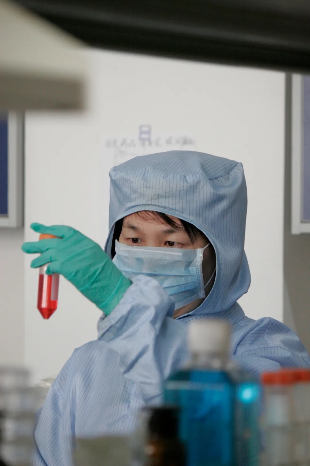 发酵是制备重组胶原蛋白的重要工艺,没有足够的量根本不能评判设计的重组胶原是否与理论功效一致,免疫原性也无法评价。所以细胞工厂构建成功才是万里长征的第一步,高密度发酵制备足够的量才可以继续下面的研究。实验室的发酵工艺有别于工厂成熟工艺,从前期准备、中间操作到后期清洗罐体耗时很长,接近一周的时间内,罐体不能污染也不能有操作失误,否则这周时间白白浪费了。为了避免失误,除了严格操作轮班彻夜值守别无好的办法,实验过程辛苦单调,一刻都不敢放松。“有几次发酵工作进行到最后了,却由于染菌导致功亏一篑,大家都很沮丧,但是没有人抱怨和放弃。”