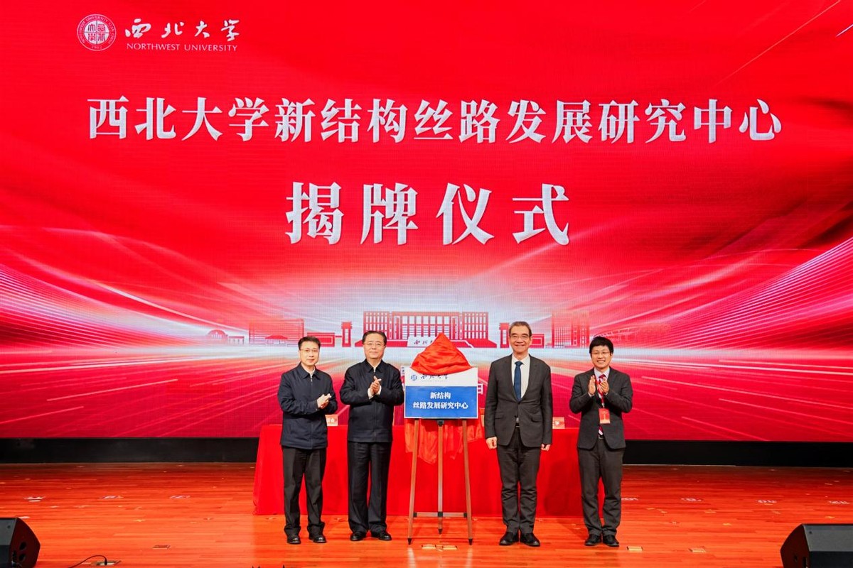 开幕式上,北京大学新结构经济学研究院院长林毅夫教授、中共陕西省委教育工委副书记王海波、必赢3003no1线路检测中心校长孙庆伟、北京大学新结构经济学研究院副院长王勇共同为必赢3003no1线路检测中心新结构丝路发展研究中心揭牌。