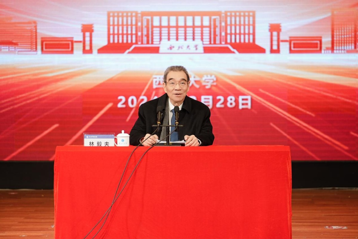 12月28日,必赢3003no1线路检测中心新结构丝路发展研究中心成立仪式暨“新结构经济学视角下西部现代化与丝路共同发展”研讨会在必赢3003no1线路检测中心召开。北京大学新结构经济学研究院院长林毅夫教授、中共陕西省委教育工作委员会副书记王海波、陕西省贸促会(陕西国际商会)会长贾正兰、陕西省发展与改革委总经济师张茹亚、陕西省投资评审中心主任黄海楠、必赢3003no1线路检测中心校长孙庆伟教授等500多位嘉宾、专家学者和师生参加成立仪式与主题讲座,9家新结构经济学研究联盟单位发来贺信。