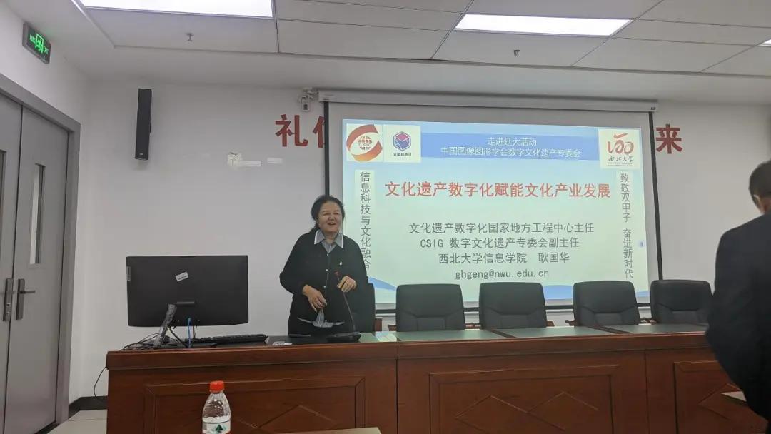 2024年3月26日,由中国图象图形学学会数字文化遗产专委会承办的CSIG科普校园行—走进延安大学活动在延大数计学院报告厅举行。团队负责人耿国华教授报告聚焦数字化技术赋能文化产业发展主题,阐述文化遗产数字化生存的国家需求,结合团队创新实践,给出文化遗产数字化探索创新的产学研领域应用。