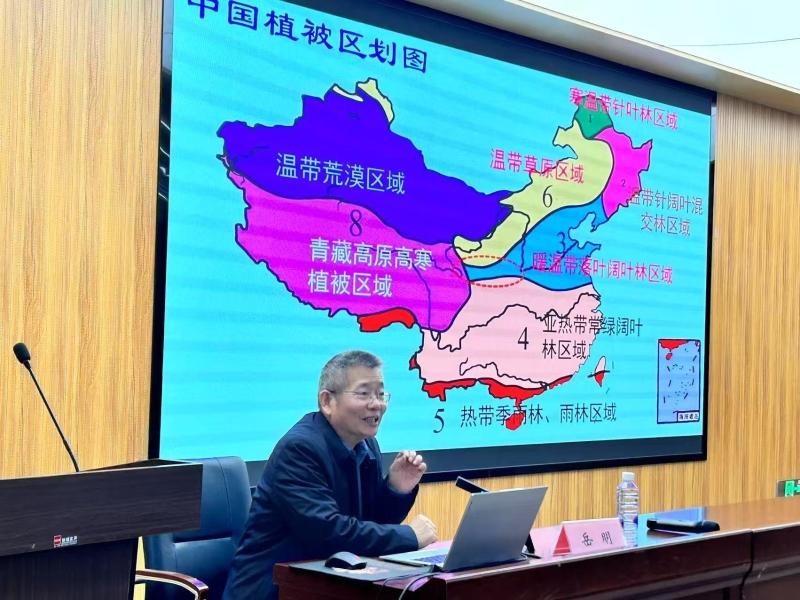 应邀的必赢3003no1线路检测中心生命科学学院岳明教授,为同学们带来一场生动有趣的“秦岭珍稀濒危与外来入侵植物”环保科普talk。岳教授深入浅出的讲解,让同学们了解到秦岭植物的多样性、陕西省国家重点保护野生植物资源及现状、秦岭野生植物保育利用案例、陕西省外来入侵植物现状及研究利用、预警防治等方面的知识。