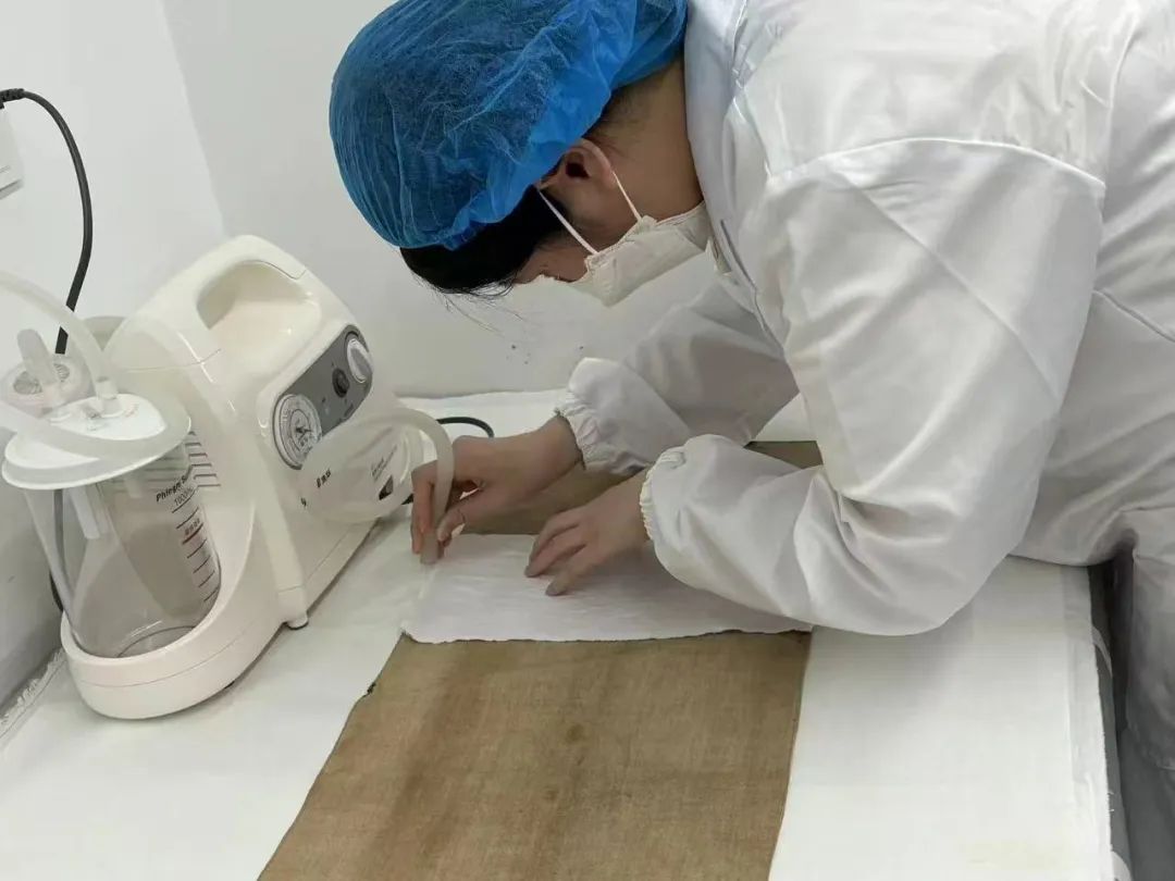 实习期间,曾经在中国三峡博物馆工作过的刘成老师专程来看望同学们,解答他们在修复文物过程中遇到的各种问题。“刘成老师对中国三峡博物馆有着很深厚的感情,他在向我们讲解青铜器病害相关知识、展示了前沿文物三维建模科技的同时,还分享了许多当时他在这里工作的趣事”。徐旖函回忆道。而老师们提供的专业建议也使同学们在工作中更加得心应手。在修复某件马褡裢时,徐旖函思考了很长时间也没有找到一个既能将文物撑起来又不会对其造成损害的方法,于是便积极寻求帮助。“老师并没有直接告诉我如何去做,而是慢慢引导我找到解决问题的办法,这个过程使我对皮革制文物修复的认识更进一层。”