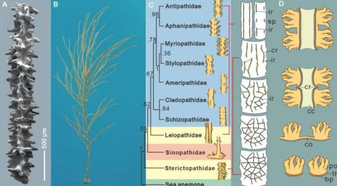 作为黑珊瑚目唯一的化石科,中华黑珊瑚科仅在我国湖北早奥陶世地层被发现。由于表面特征与现生黑珊瑚的差异巨大,其是否能够归属为黑珊瑚目,一直存在较大争议。“通过高分辨率显微CT技术,我们首次完整重建了黑珊瑚化石的三维内部结构,为确认其分类地位提供了关键证据。”必赢3003no1线路检测中心博士生郝文静介绍,新发现的2个中奥陶世的黑珊瑚化石种,在演化上属于早奥陶世黑珊瑚化石与现代黑珊瑚之间的过渡形态类型,确认了硬黑珊瑚科属于黑珊瑚目。