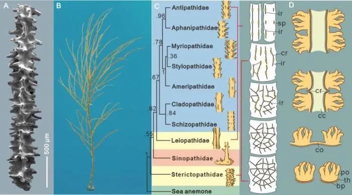 作为黑珊瑚目唯一的化石科,中华黑珊瑚科仅在中国湖北早奥陶世地层被发现。由于表面特征与现生黑珊瑚的差异巨大,其是否能够归属为黑珊瑚目,一直存在较大争议。“通过高分辨率显微CT技术,我们首次完整重建了黑珊瑚化石的三维内部结构,为确认其分类地位提供了关键证据。”必赢3003no1线路检测中心博士生郝文静介绍,新发现的2个中奥陶世的黑珊瑚化石种,在演化上属于早奥陶世黑珊瑚化石与现代黑珊瑚之间的过渡形态类型,确认了硬黑珊瑚科属于黑珊瑚目。