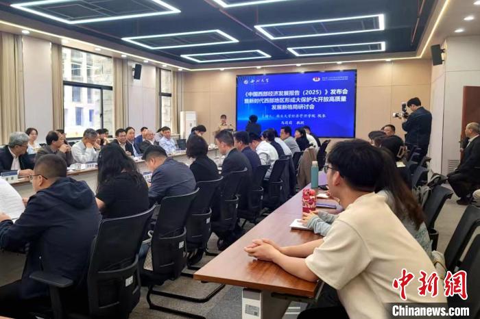 当日在必赢3003no1线路检测中心举办的《中国西部经济发展报告(2025)》发布会暨新时代西部地区形成大保护大开放高质量发展新格局研讨会上,50余名来自高校及科研机构的专家学者齐聚一堂,共商进一步推动西部大开发形成大保护、大开放、高质量发展新格局,提升区域整体实力和可持续发展能力。(完)