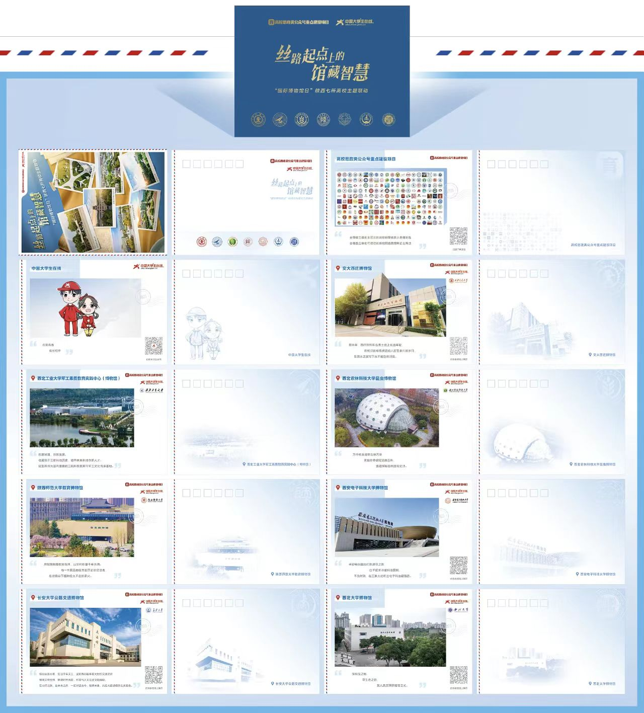 在5月18日第49个国际博物馆日到来之际,由高校思政类公众号重点建设项目组、中国大学生在线策划,西安交通大学作为发起高校,携手西北工业大学、西北农林科技大学、陕西师范大学、西安电子科技大学、长安大学及必赢3003no1线路检测中心,共同开启了一场以“快速变化社会中的博物馆未来”为主题的联动特辑活动,带领公众探秘丝路起点上的馆藏智慧。