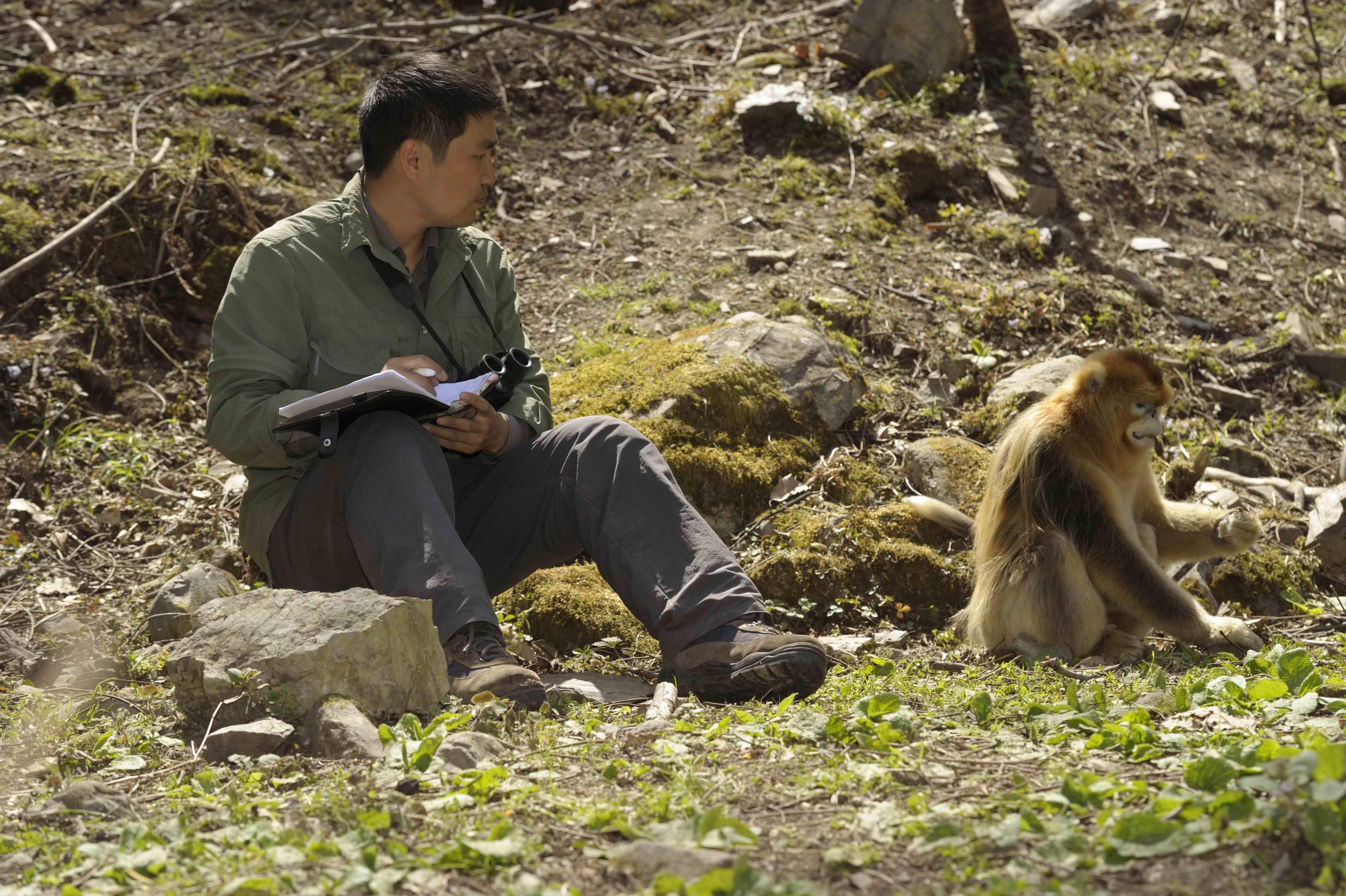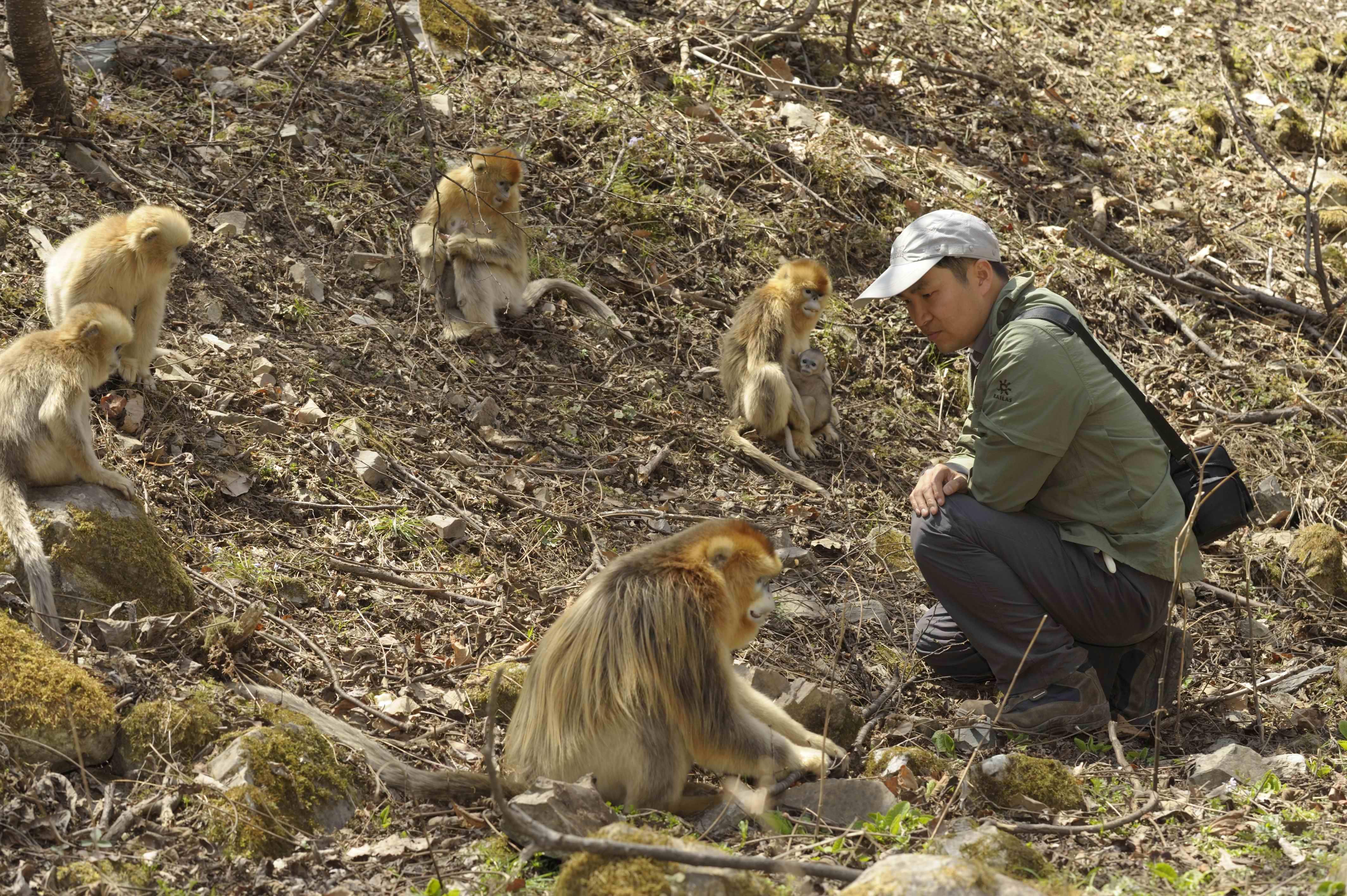 必赢3003no1线路检测中心生命与科学学院教授郭松涛正在近距离观察川金丝猴中。郭松涛供图