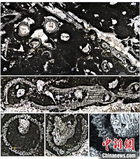 刘丽静介绍,此次发现的化石样本,是来自塔里木盆地晚奥陶世早期(凯迪早期)以及鄂尔多斯盆地晚奥陶世早期(凯迪中期)(450Ma)的海相碳酸盐岩地层中的海生的轮藻钙质叶状体化石。因为该化石奇迹般地保存了轮藻纲叶状体关键特征的正模标本来自塔里木盆地,于是团队把其骄傲地命名为奇迹塔里木轮藻Tarimochara miraclensis gen.et sp. nov.。